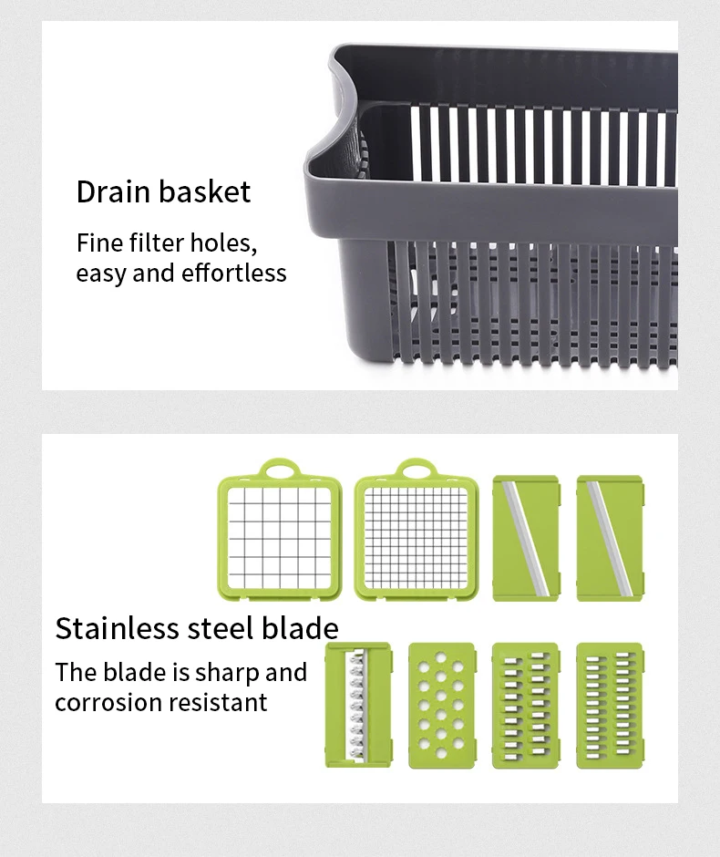 3. Сэкономьте время и деньги: с этим кухонным набором для резки вы можете сэкономить 70% времени, избавиться от слезотечения при нарезке лука, а также помочь вам приготовить еду более элегантно.