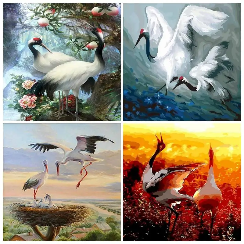 Картина маслом по номерам белого крана, Набор для творчества для рисования животных, раскраска на холсте, Украшение стен, подарок для взрослых