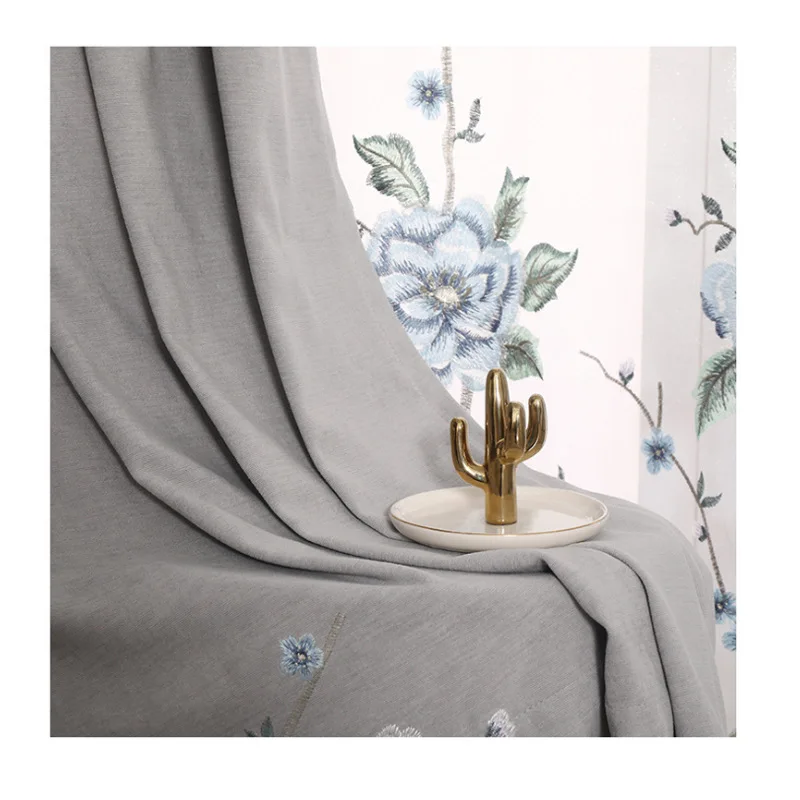 Китайские светильник-серые Роскошные Модные Простые занавески для гостиной с вышивкой для спальни