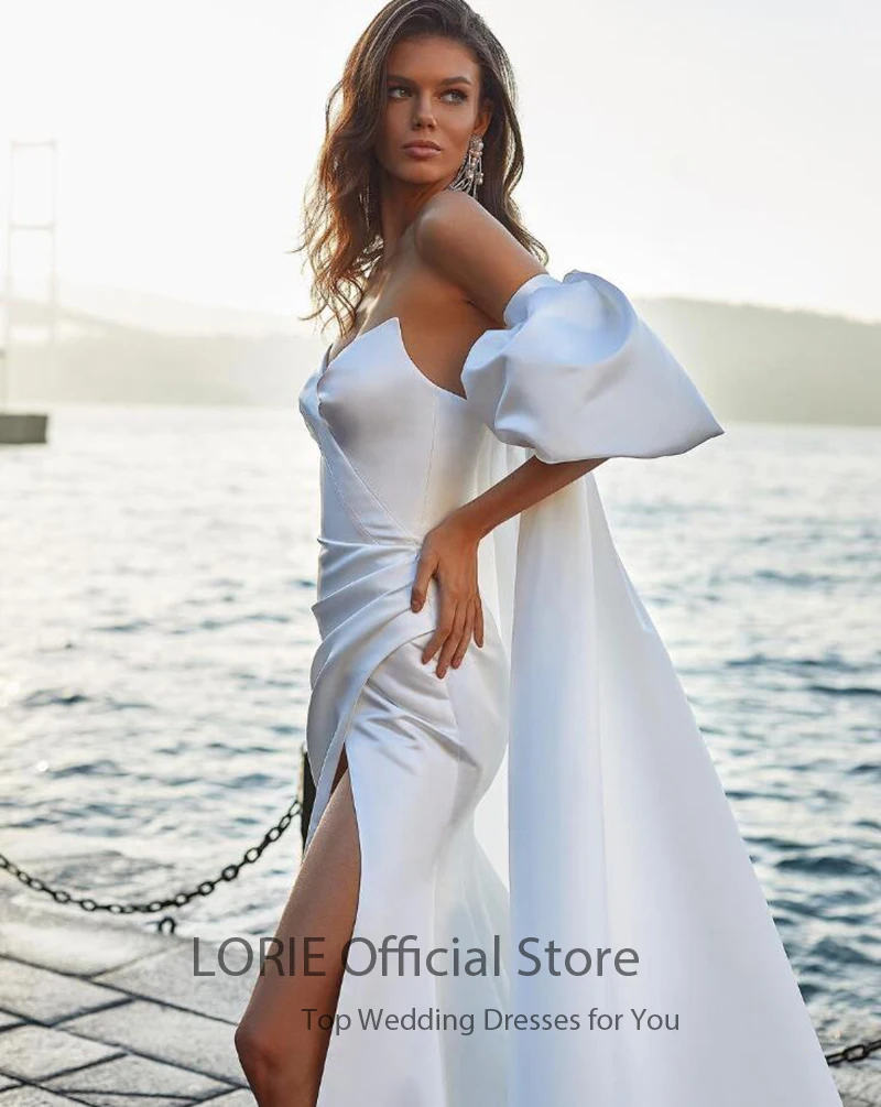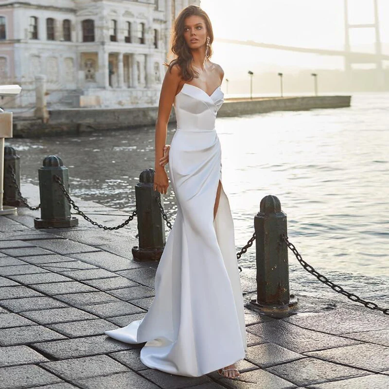 Платье свадебное с юбкой-годе, V-образным вырезом и разрезом сбоку