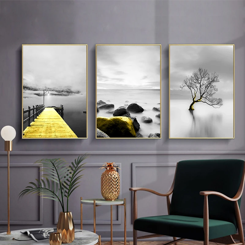 Золотой и серый Алмазная Картина Пейзаж 3 шт мульти панель Алмазная вышивка печать скандинавский дом украшение для гостиной