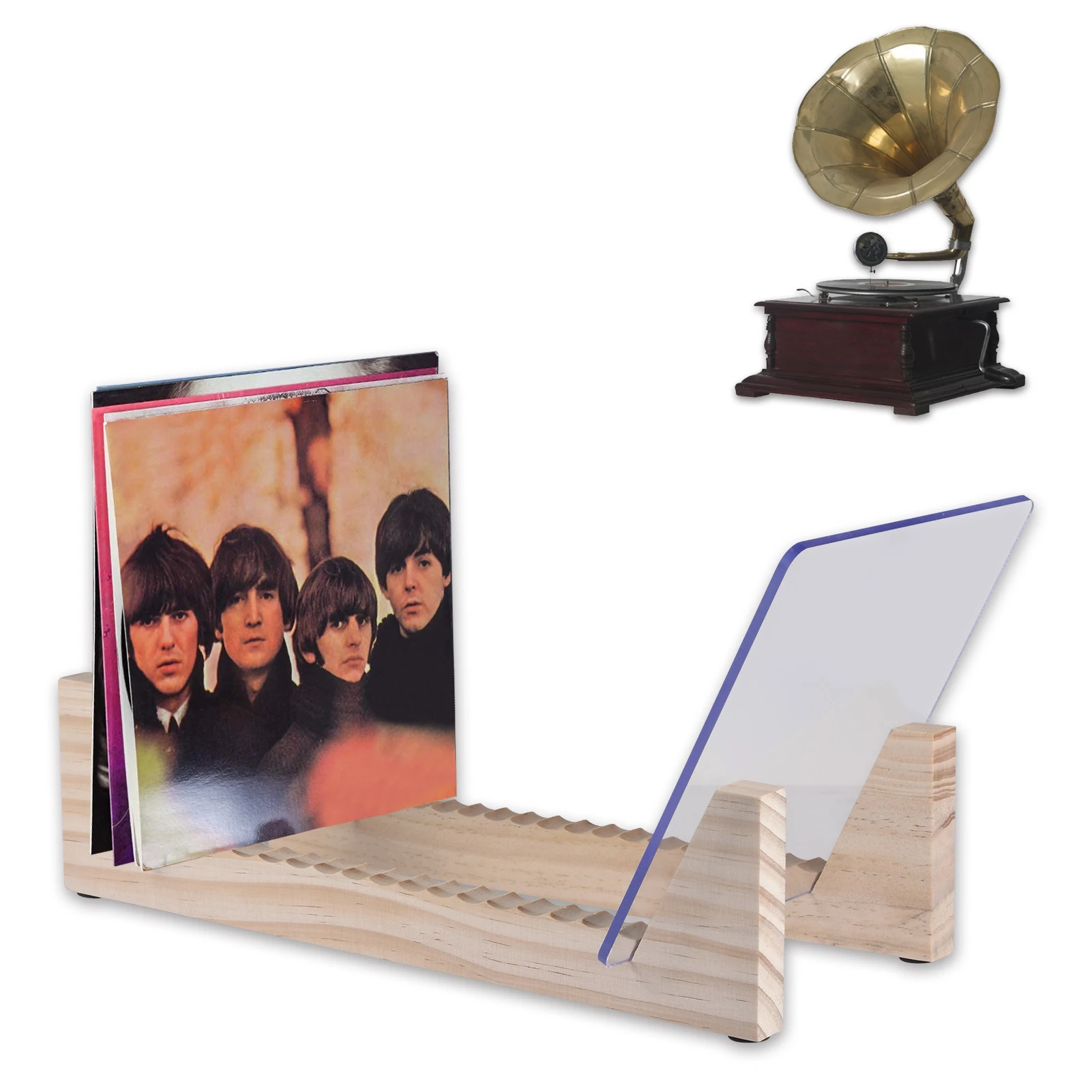 Современный держатель для виниловых записей, стойка большой емкости для демонстрации, вмещает до 25 альбомов, Высококачественная твердая сосновая древесина, прочная и ручная работа