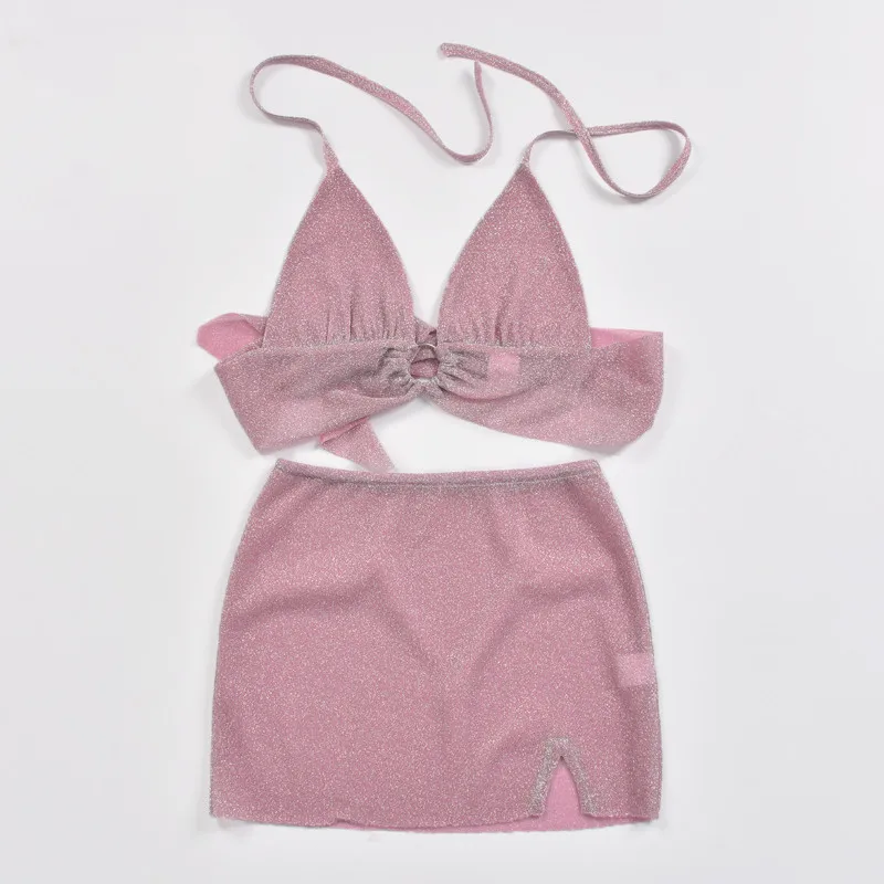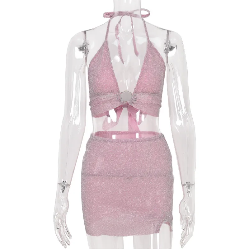 Женский прозрачный сетчатый топ hirigin, мини-юбка на бретелях с V-образным вырезом и открытой спиной, уличная одежда