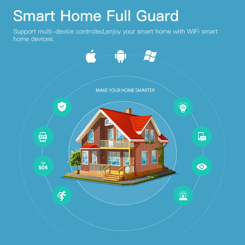 5. Простая установка с двусторонней лентой, просто приклейте ее куда угодно, чтобы защитить безопасность вашего дома. Сделайте интеллектуальную связь с другими смарт-устройствами для достижения комплексной идеи интеллекта