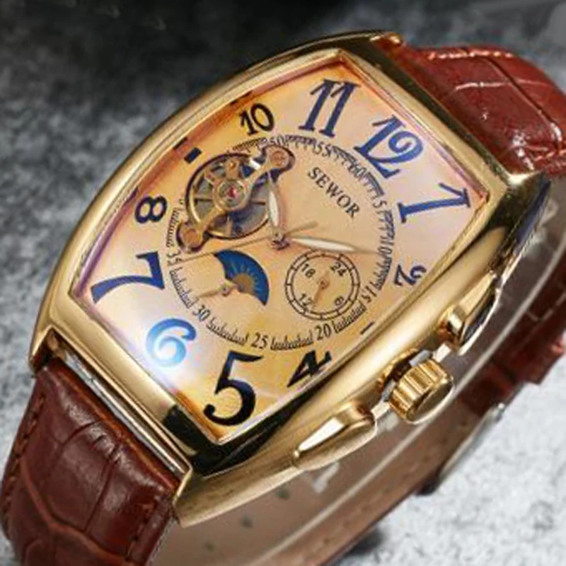 Отзыв о товаре Роскошные золотые часы с турбийоном SEWOR, маленькие секунды, кожаный ремешок, автоматические механические наручные часы, мужские часы от пользователя L***o