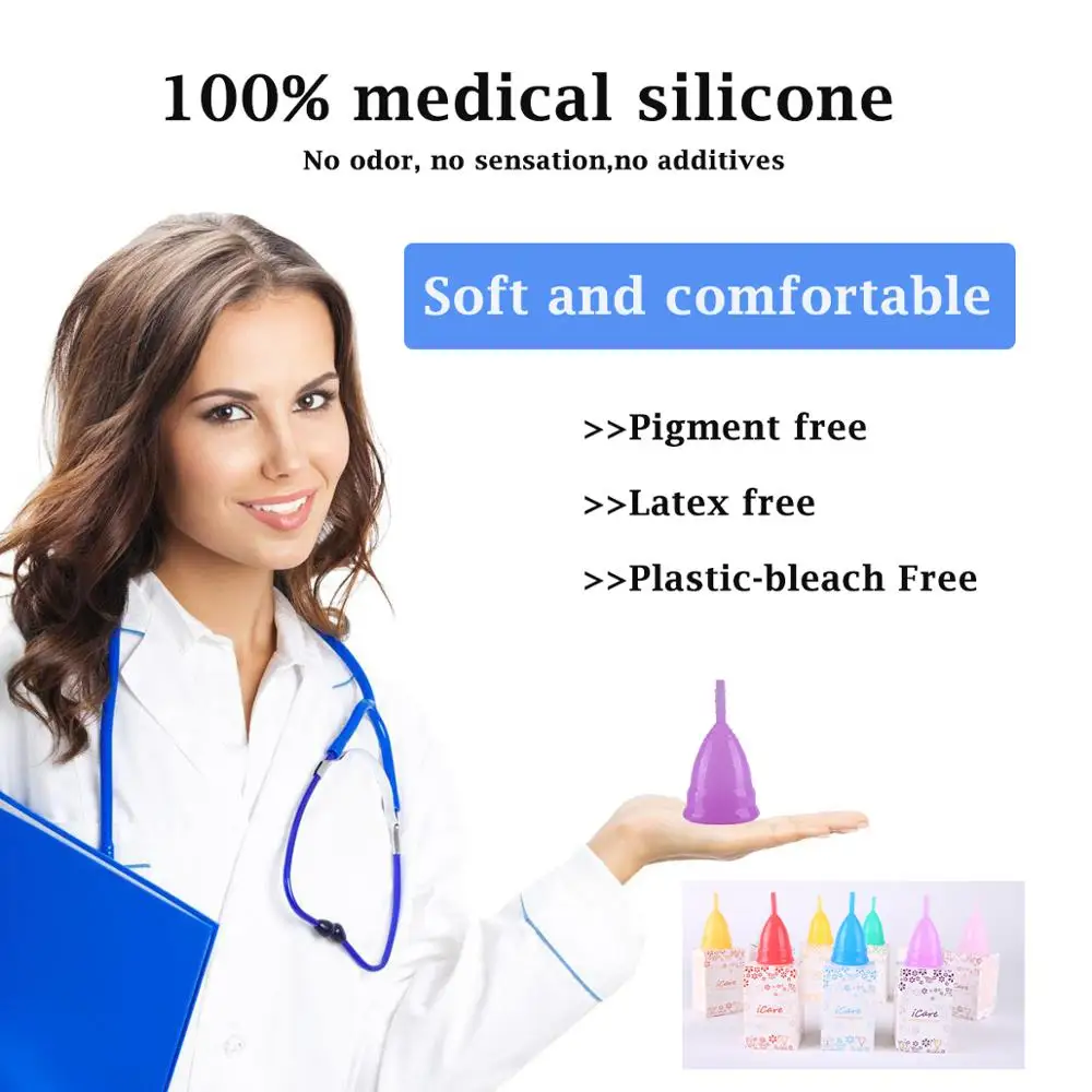 Менструальная чашка размера S подходит для нормального протекания.Размер L менструальная чашка подходит для сильного потока.Мы рекомендуем вам купить два разных размера менструальных чашек для различных менструальных условий.