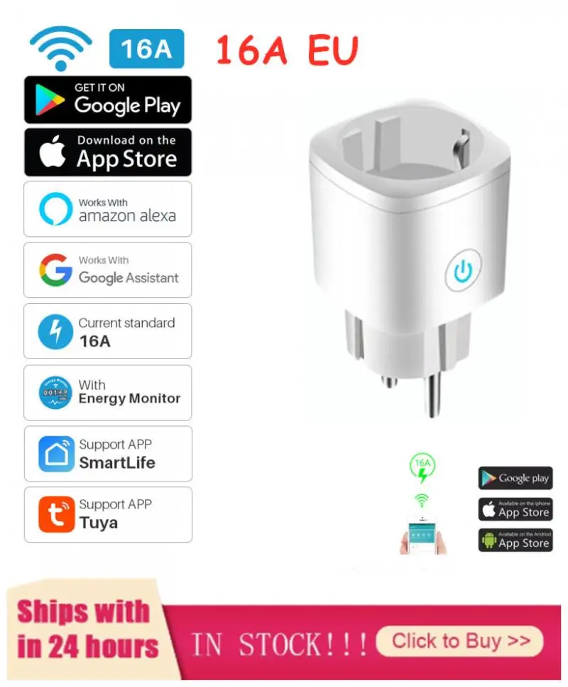 Смарт-розетка Tuya с поддержкой Wi-Fi и голосовым управлением, 16 А