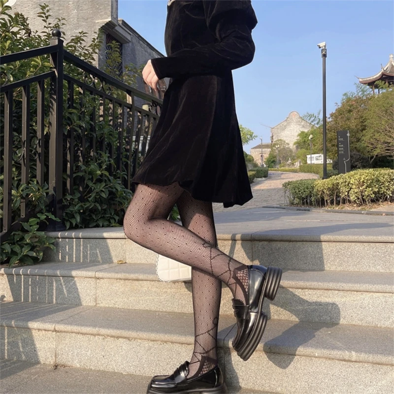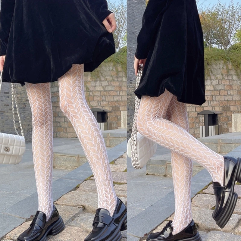 Женские ажурные Цветочные кружевные колготки в стиле "Лолита", прозрачные сетчатые колготки в японском стиле, винтажные прозрачные чулки