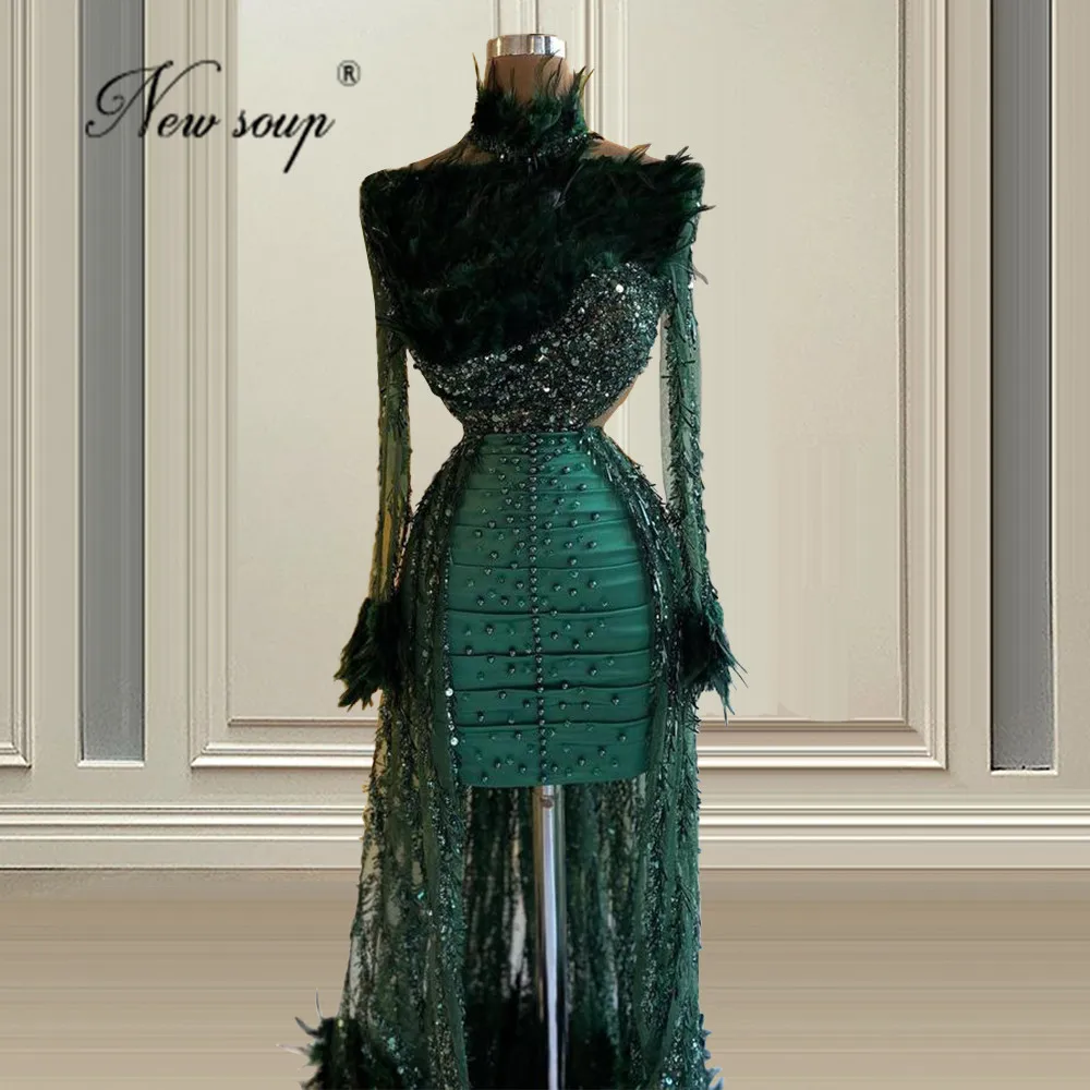 Зеленые Вечерние платья с перьями 2021 сексуальные платья ручной работы с бисером для выпускного вечера женские арабские вечерние платья Дубаи платья