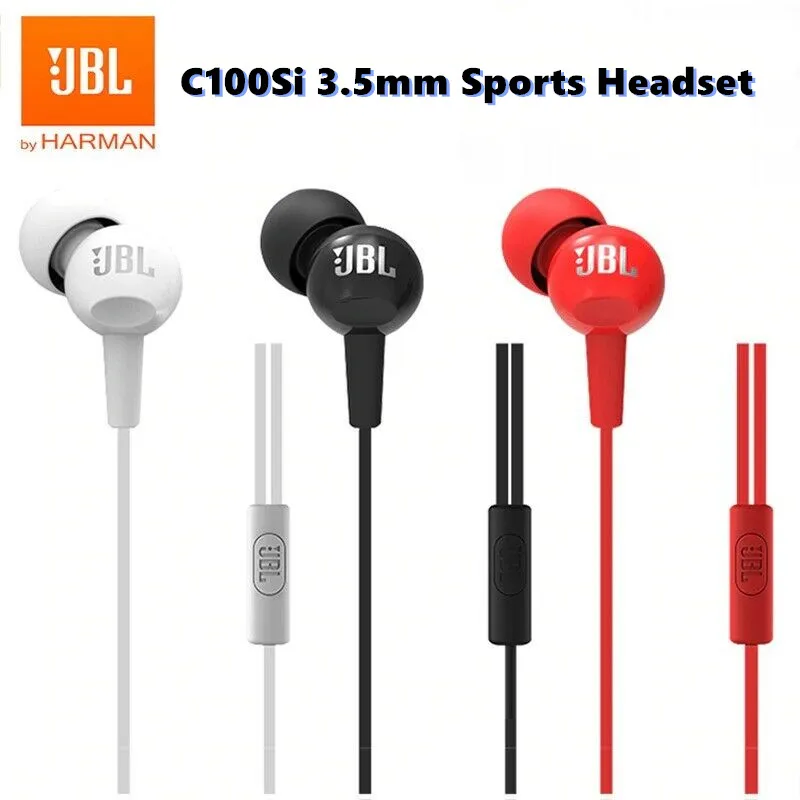 Оригинальные Проводные стереонаушники JBL C100Si 3,5 мм, музыкальная Спортивная гарнитура с глубокими басами, гарнитура для громкой связи с микрофоном, официальная JBL C100Si