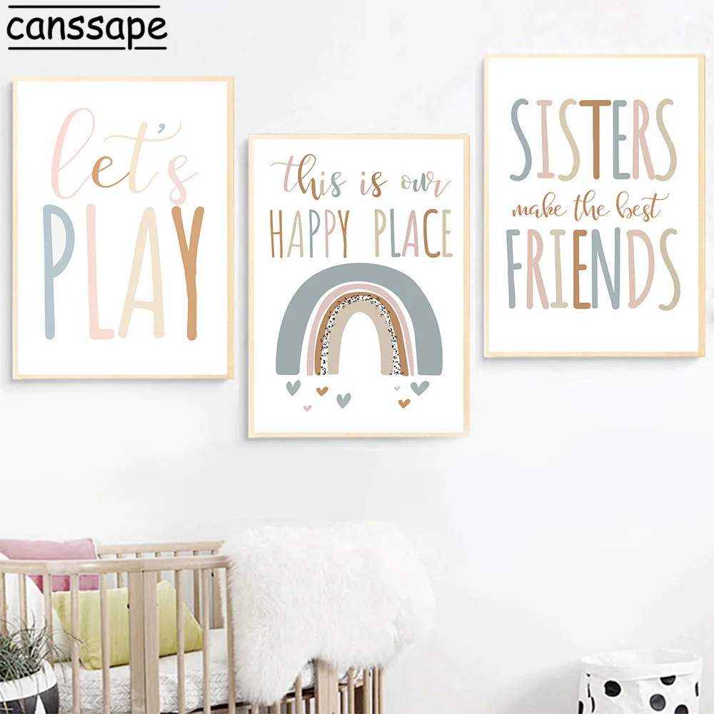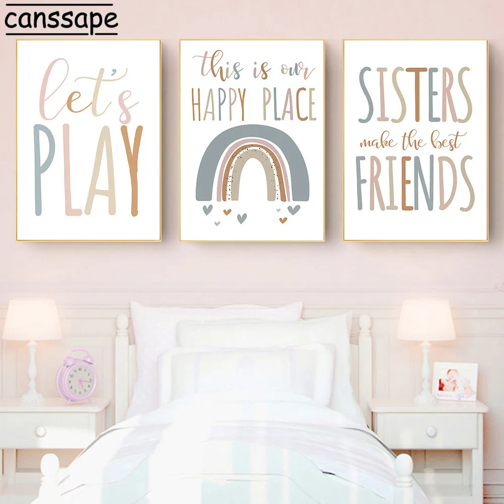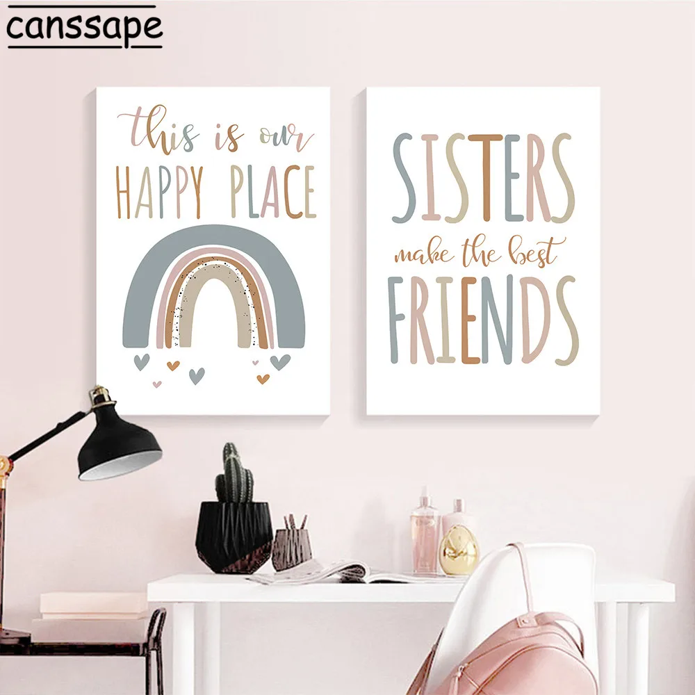 Настенные художественные Плакаты для детской комнаты, постер с радугой, принт сестры, друзей, настенные картины в скандинавском стиле, украшение детской комнаты