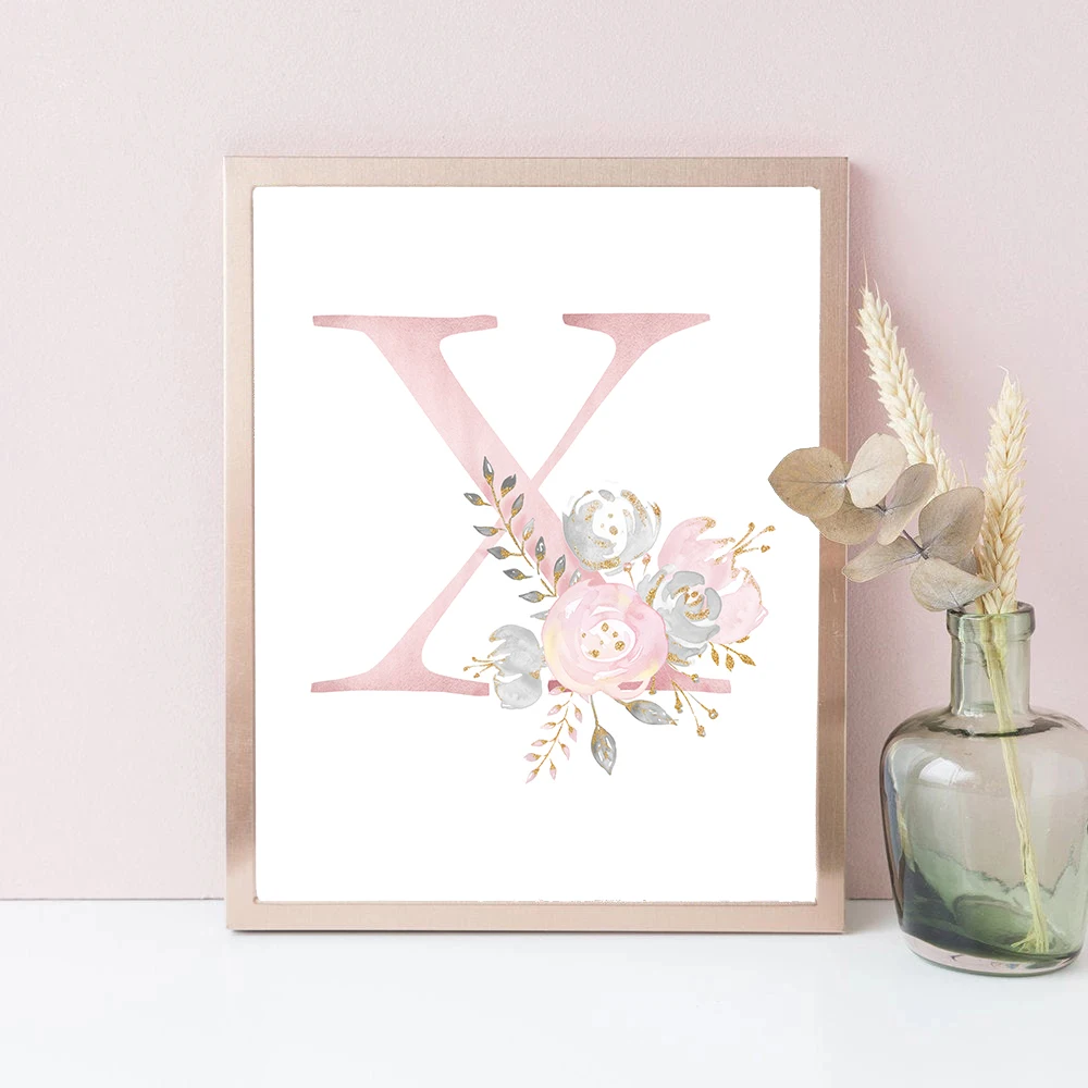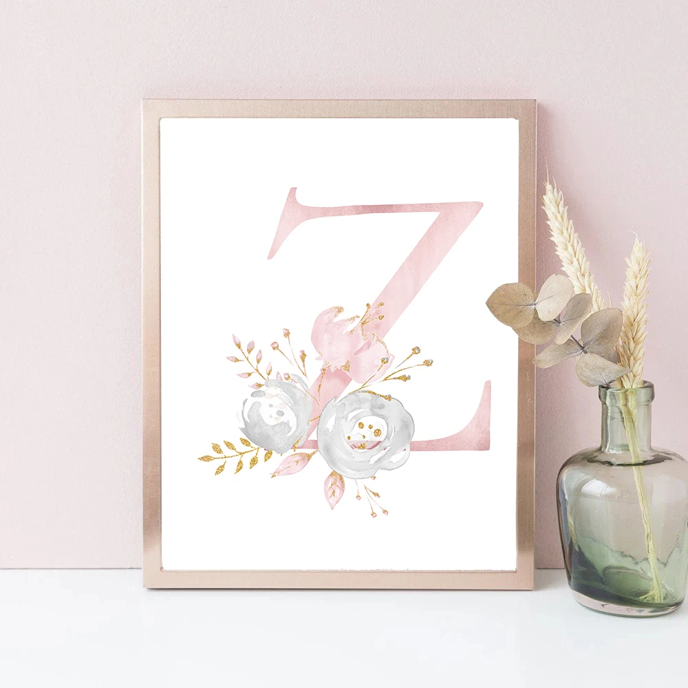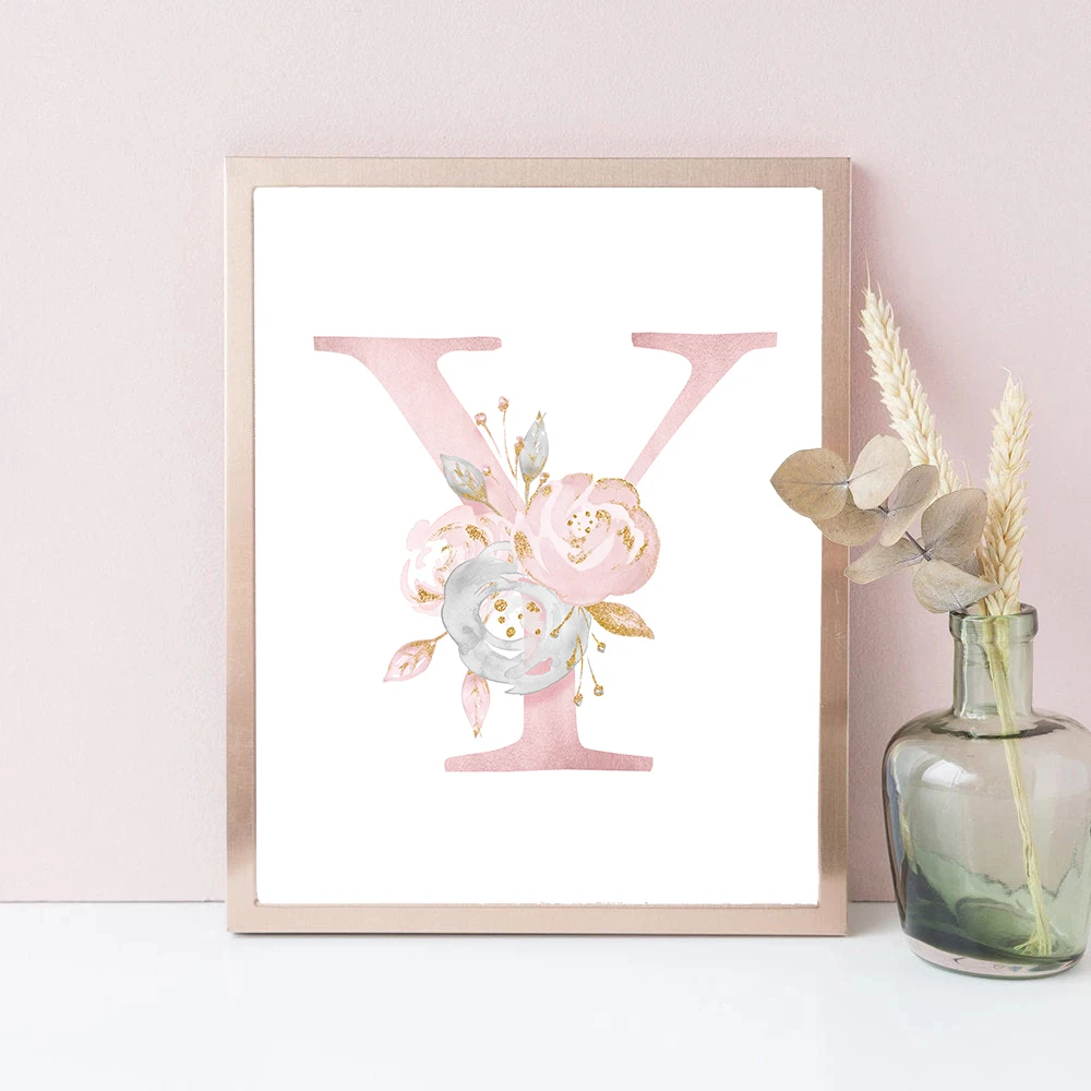 Акварель цветок розовый письмо холст картина Плакаты и принты Cuadros настенные картины для малыша Гостиная украшение дома