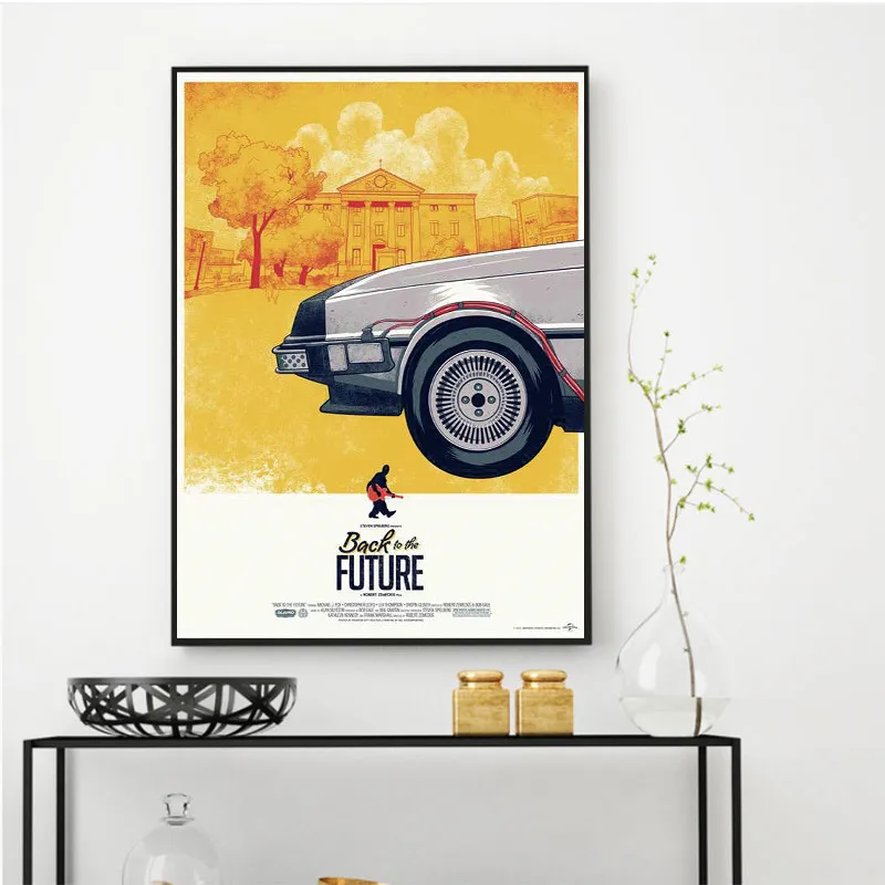 Плакат Назад в будущее автомобиль художественные картины Шелковый плакат на холсте принт классические картины из фильмов Куадрос домашний Декор подарок для мальчика ребенка