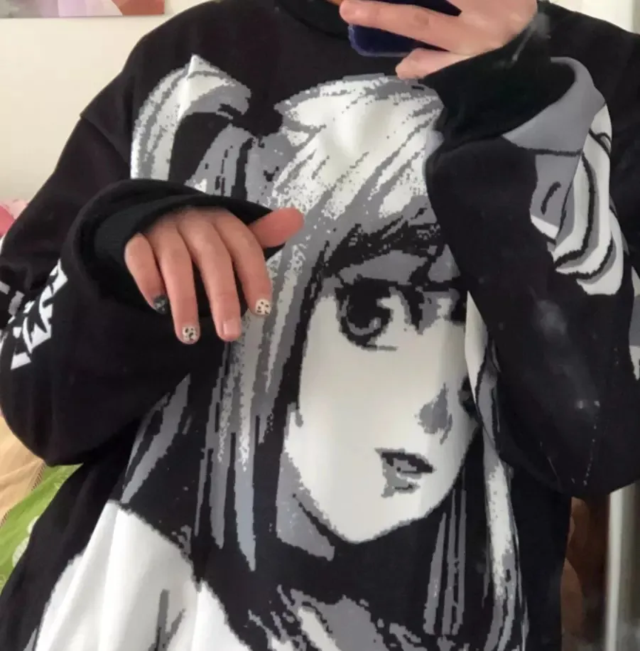 Винтажная Мужская Хип-Хоп Уличная Harajuku Толстовка Ретро японский стиль аниме девушка мультфильм толстовки 2021 осенний пуловер Топы