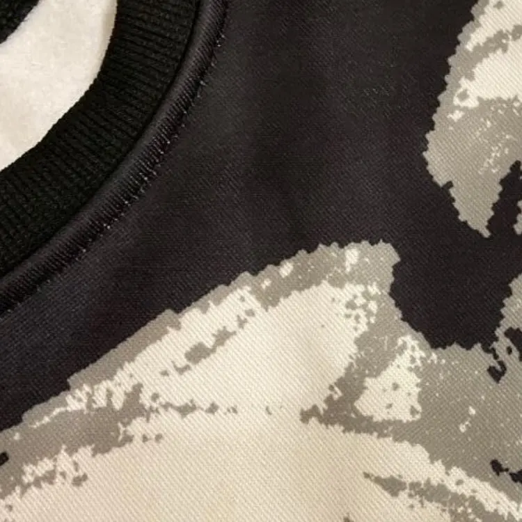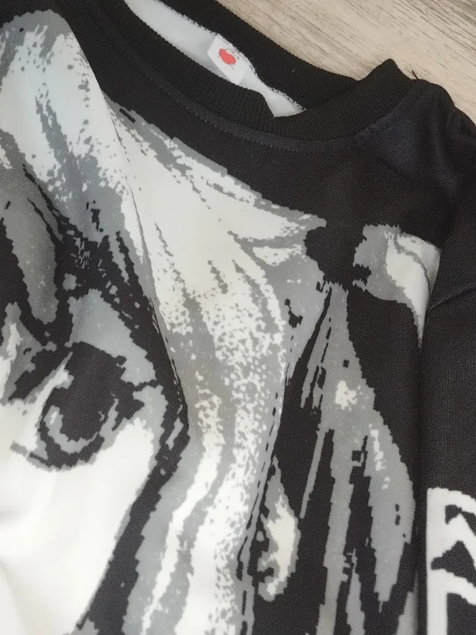 Вы должны понимать, что это свитшот, из очень своеобразной синтетической ткани низкого качества. Принт не очень удачно размещен.