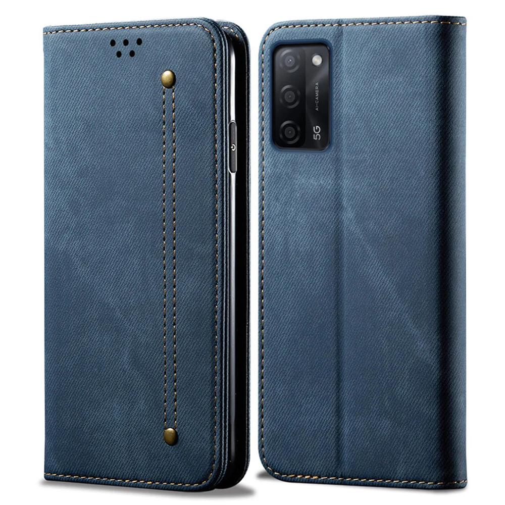 Чехол-бумажник из денима для OPPO A5S A5XS, кожаный флип-чехол на м...