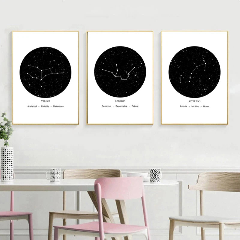 Созвездие детской стены искусства холст плакат принты Астрология Зн...