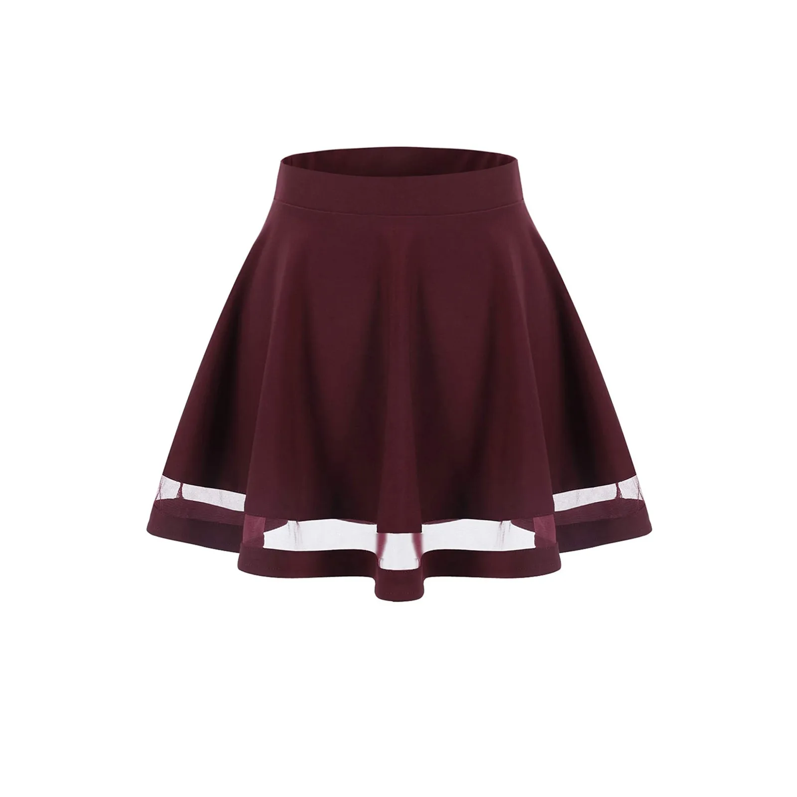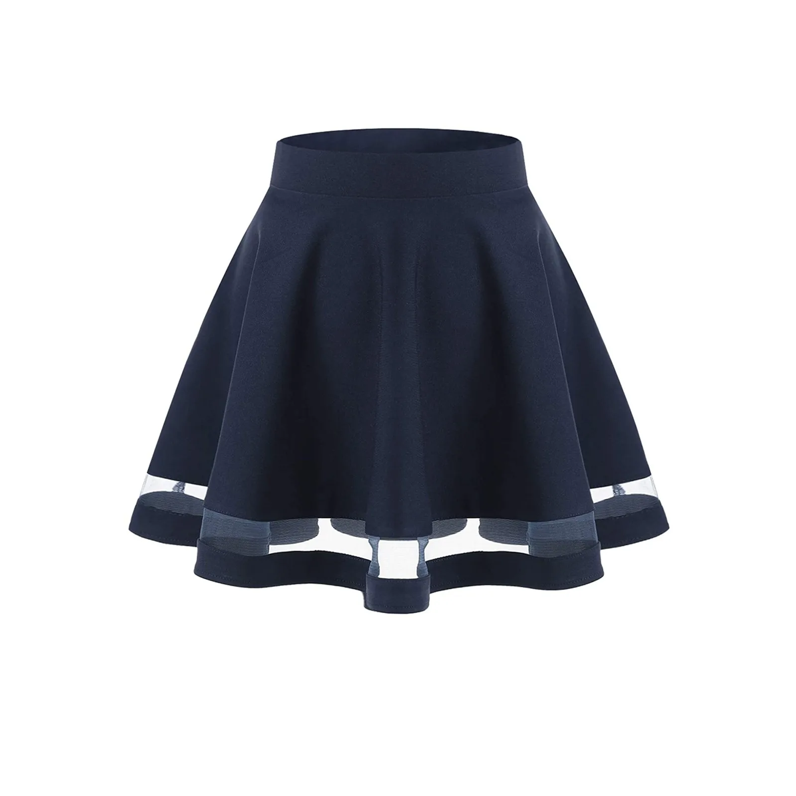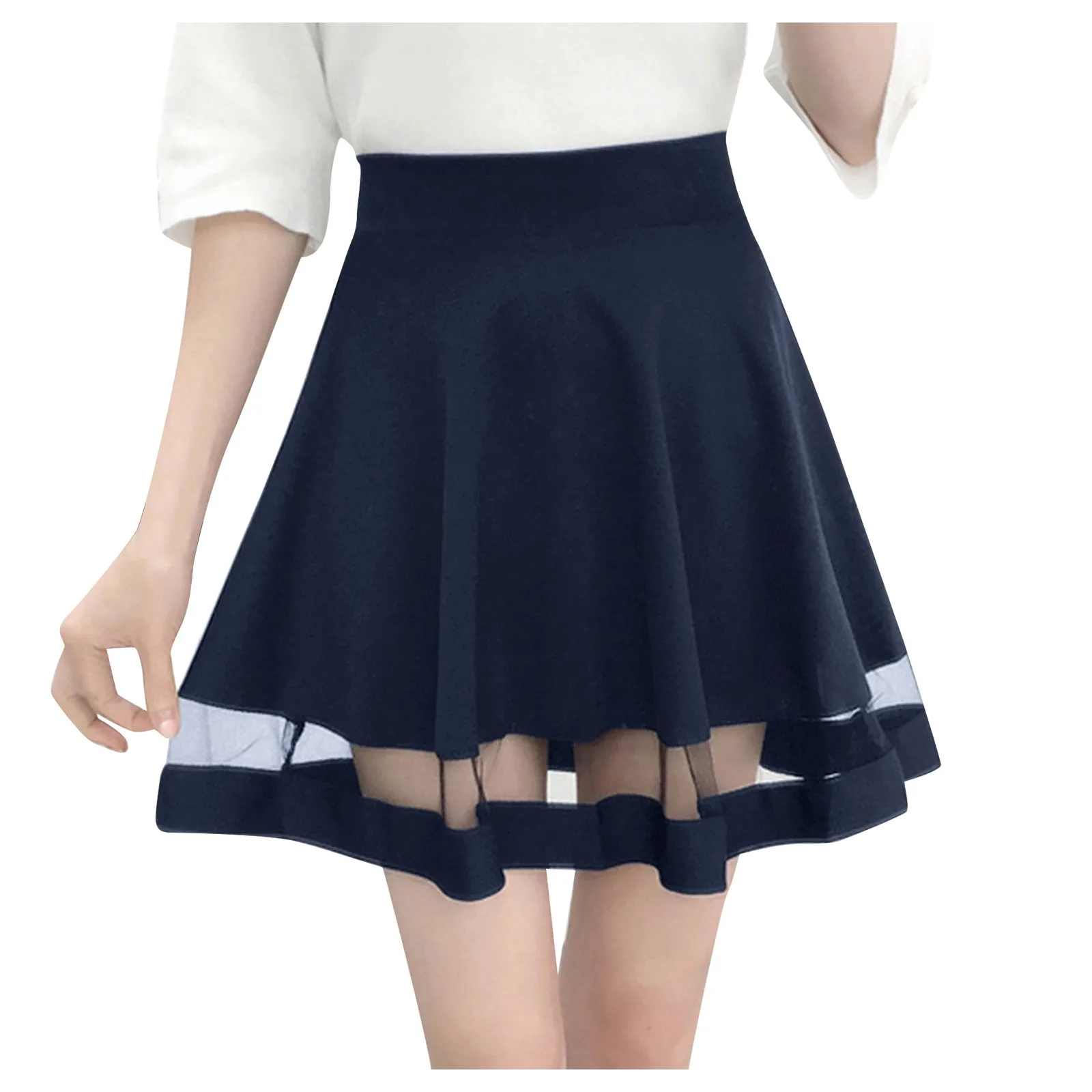 Женская универсальная базовая эластичная юбка-трапеция, расклешенная Повседневная мини-юбка фигуристки, однотонная Прозрачная Юбка с подолом, студенческие короткие юбки для танцев