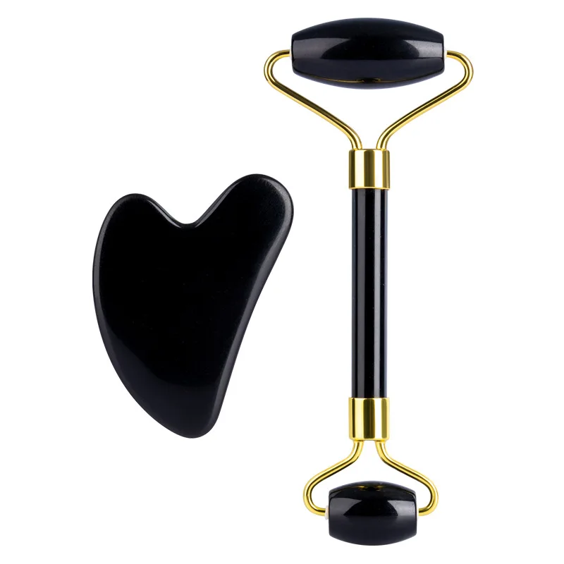 Натуральный черный обсидиан нефритовый роликовый лицевой массажер для тела нефритовый камень Гуа Ша скребок для доски лифтинг лица инструмент для массажа красоты