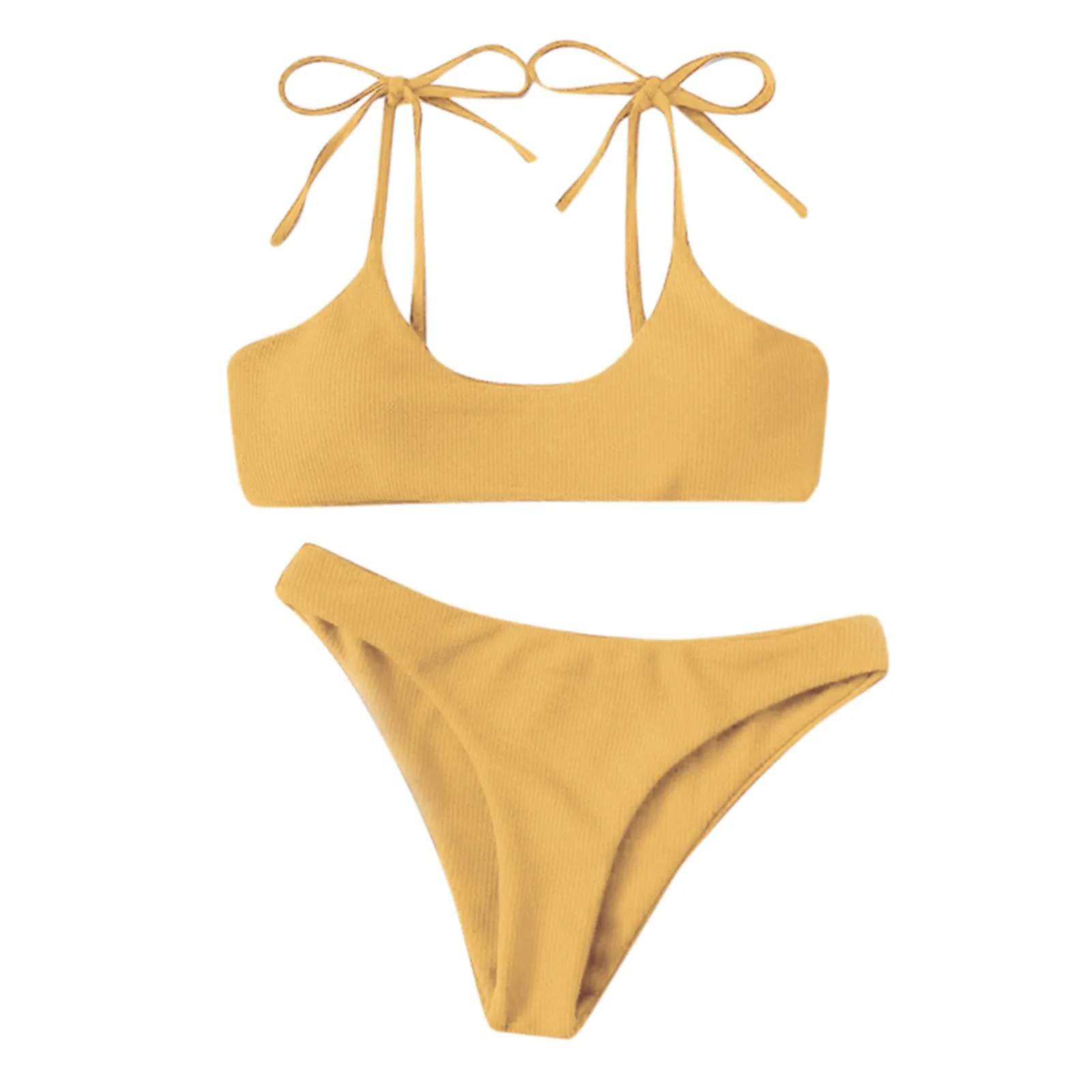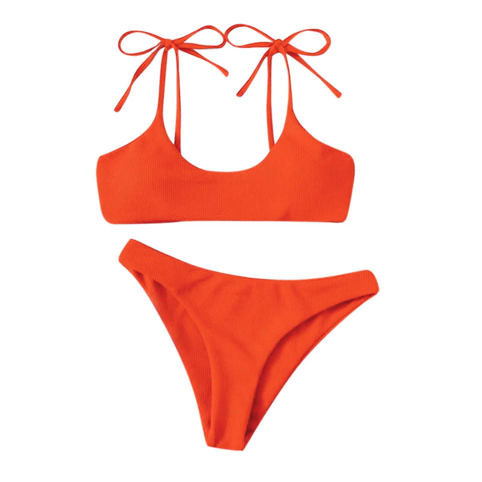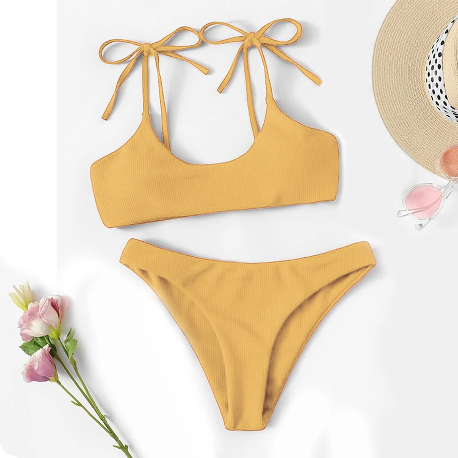 Женское бикини maillot de bain, однотонный купальник из двух частей с высокой талией и регулировкой живота, одежда для плавания