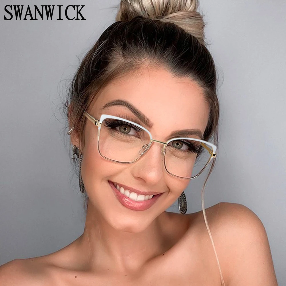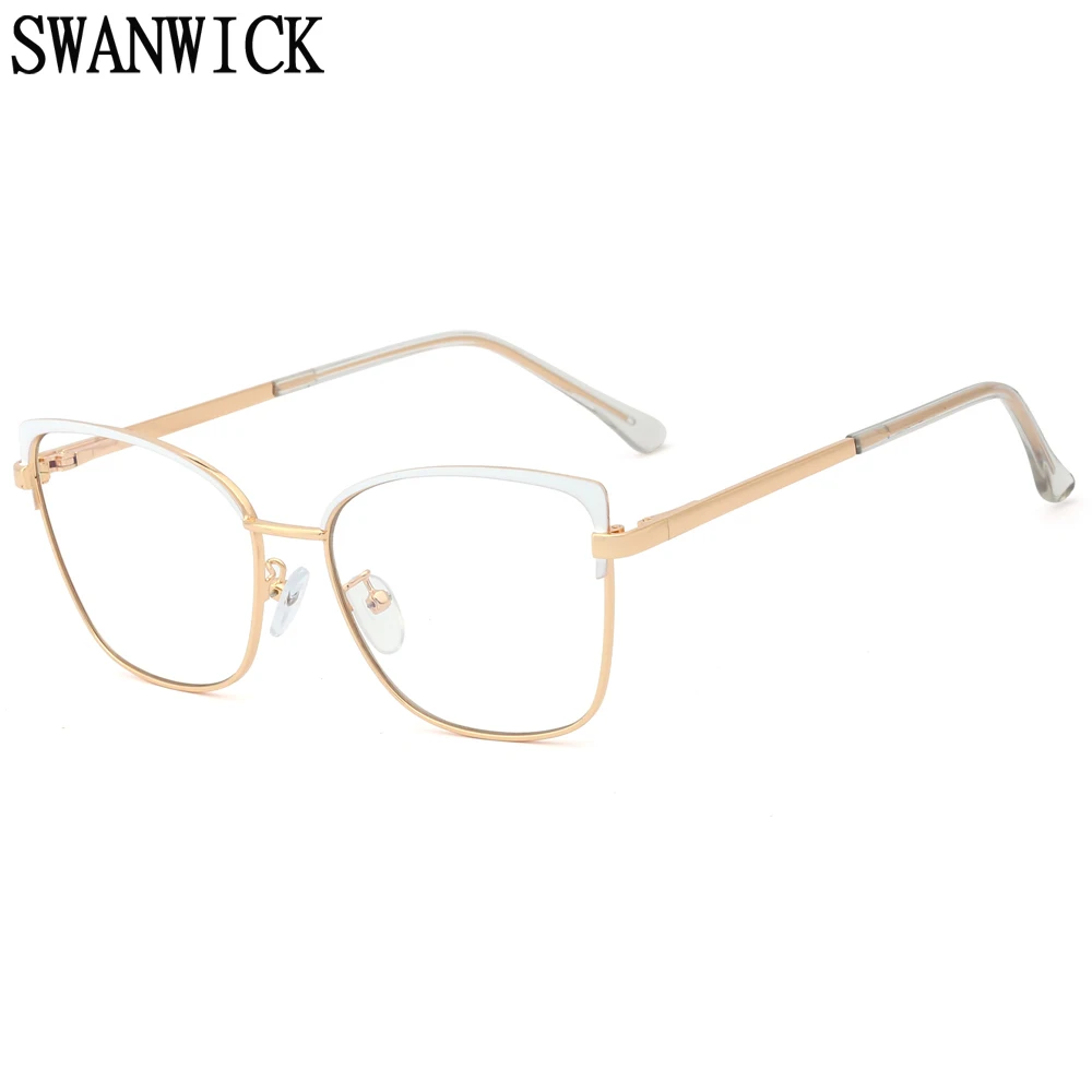 Swanwick синий светильник, блокирующие очки, оптические женские очки, металлическая оправа, прозрачная, украшение для отдыха, белый модный стиль