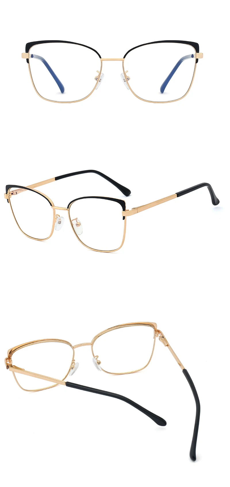 Металлические очки кошачий глаз, прозрачные очки в золотистой оправ...