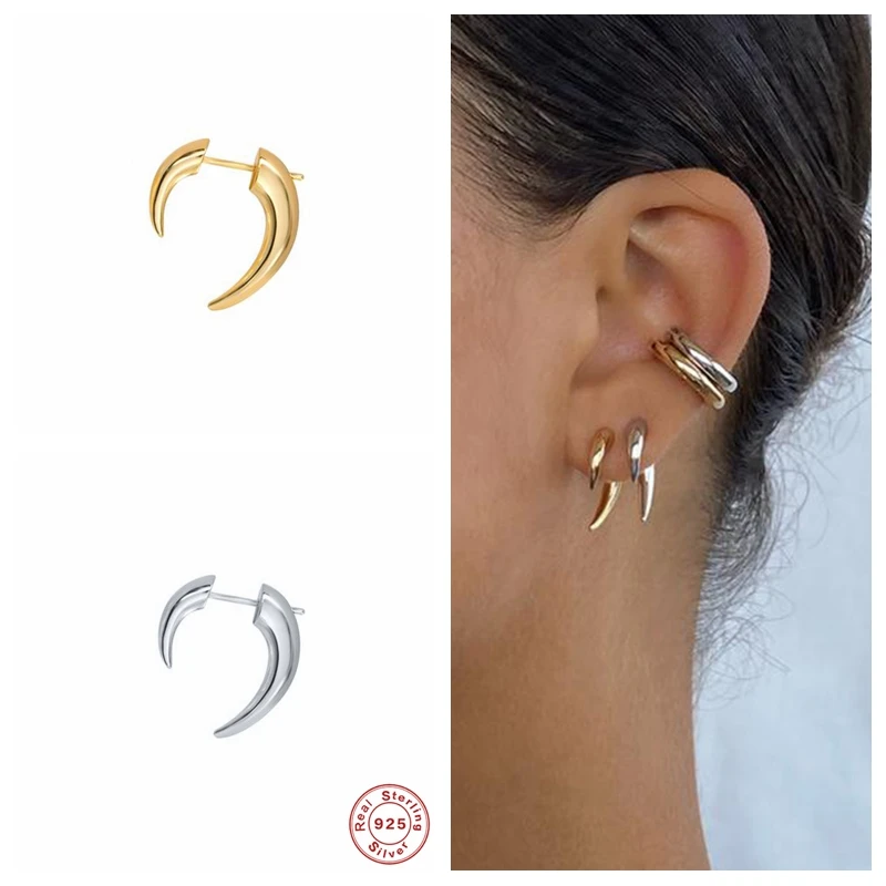 Серьги-гвоздики из стерлингового серебра 925 пробы в богемном стиле с Луной для женщин в этническом стиле бык рога полумесяца, серьги-гвоздики Huggies, ювелирные украшения, подарок
