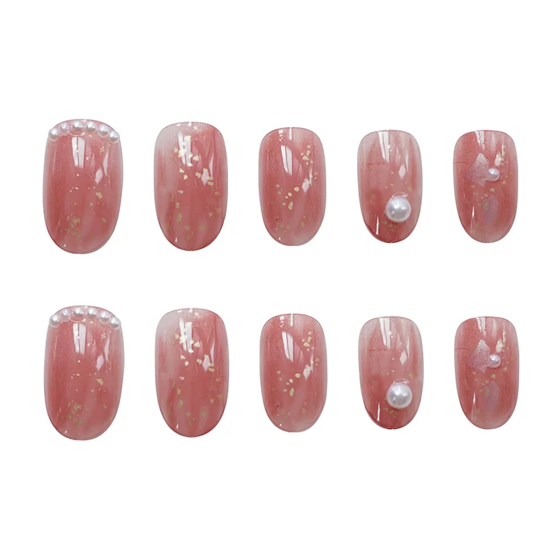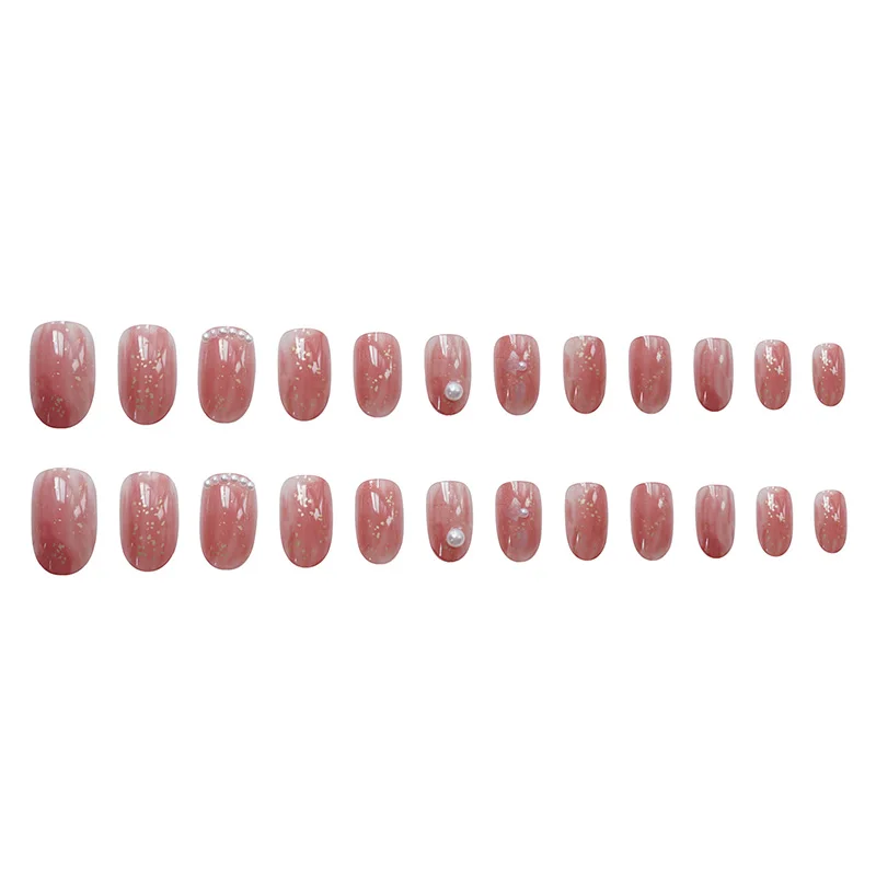 Красивые накладные ногти, 24 шт., накладные ногти из золотой фольги, жемчужный ореол, красящие накладные ногти, съемные накладные ногти с предварительным дизайном, акриловые накладные ногти