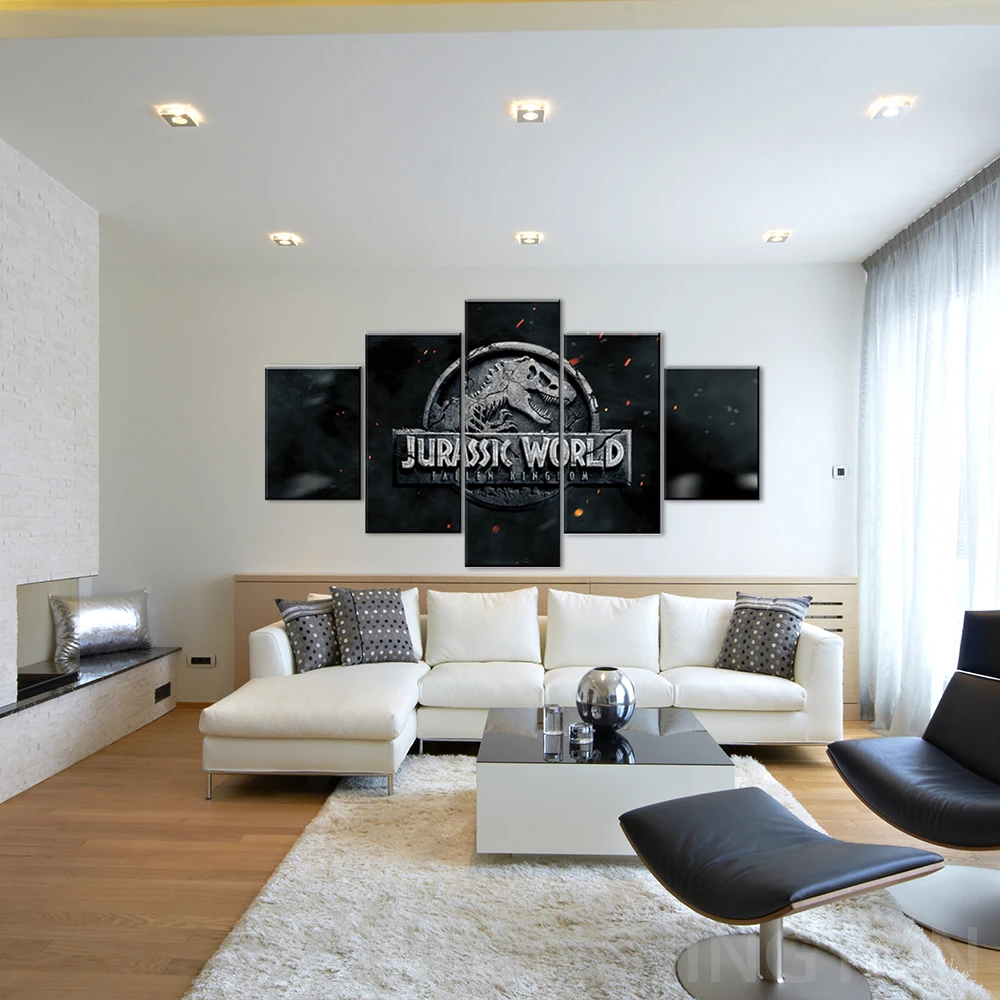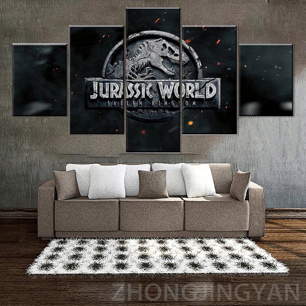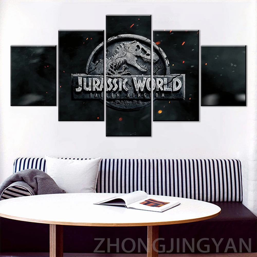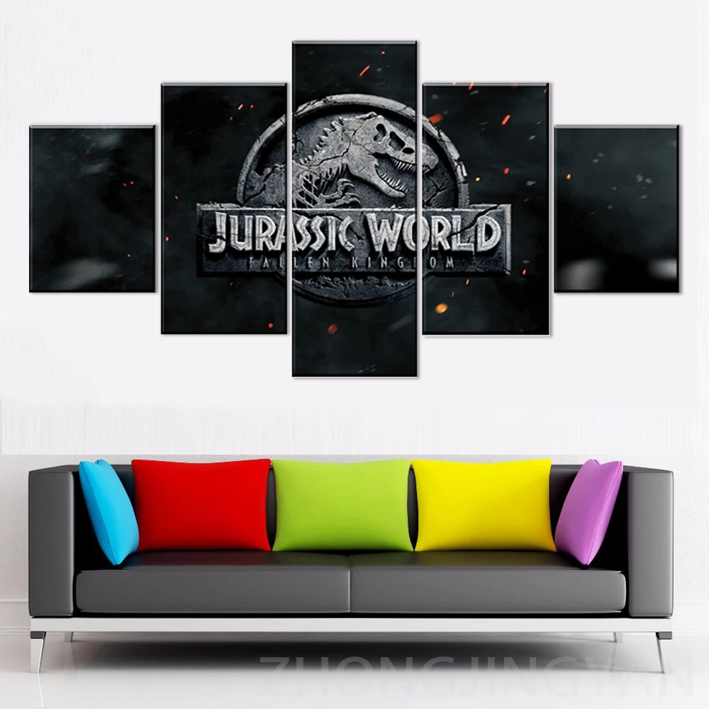 5 панелей Современная холщовая рамка художественные фильмы с принтом мир Юрского периода постер с логотипом страны падения Настенная картина домашний интерьер Декор pa