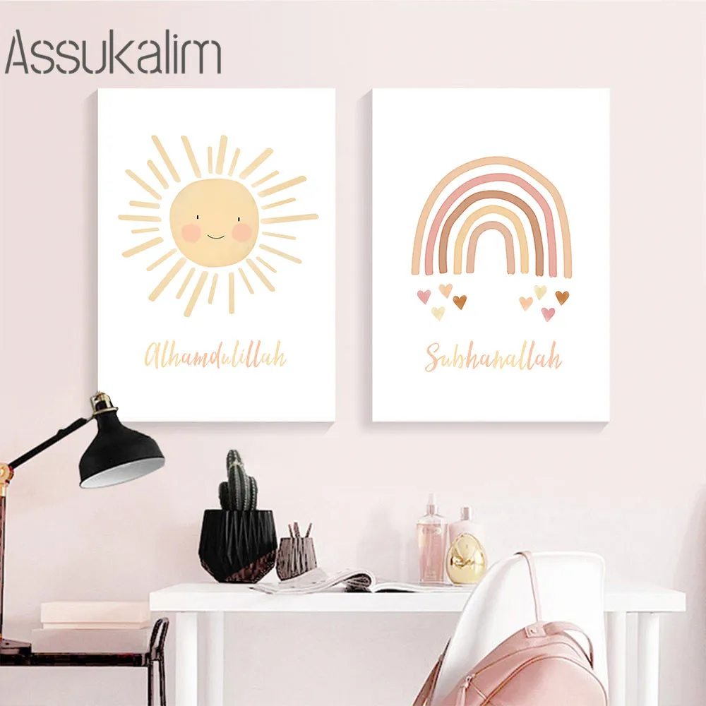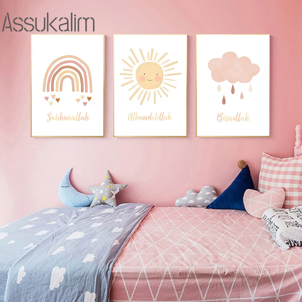 Исламские мусульманские рисунки Bismillah постеры для детской настенной картины на холсте солнце Радуга облака картины декор детской комнаты