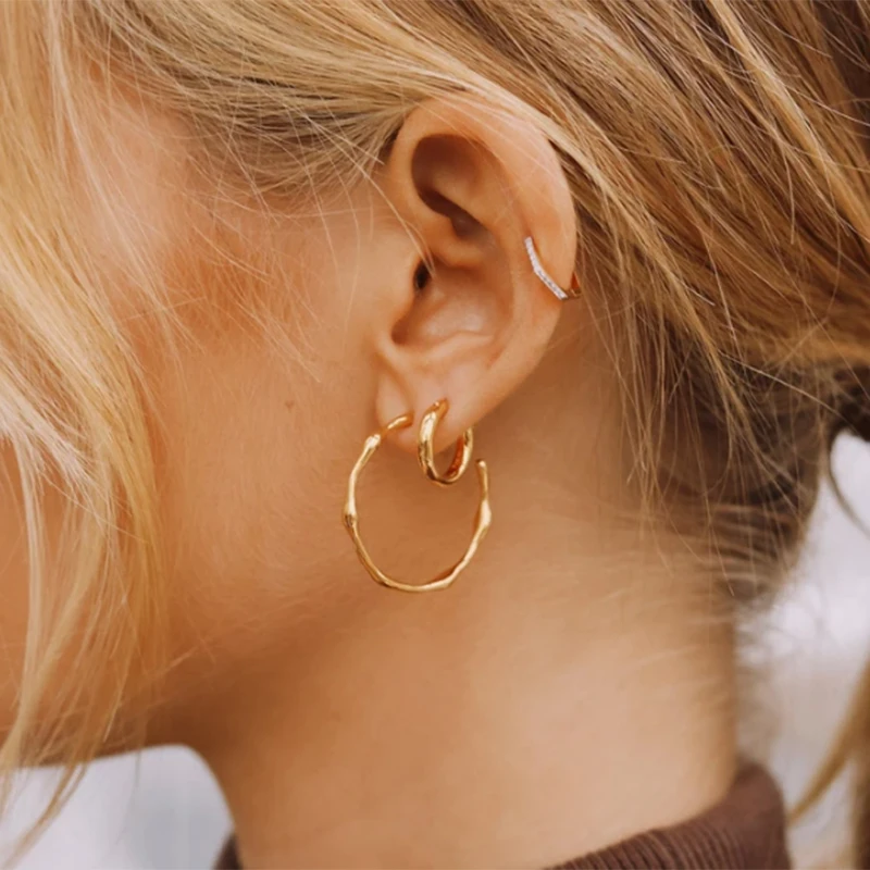 925 стерлингового серебра волнистые линии серьги круглые большие бамбуковые цепи форма открытия круг серьги для женщин модный подарок для ювелирных изделий