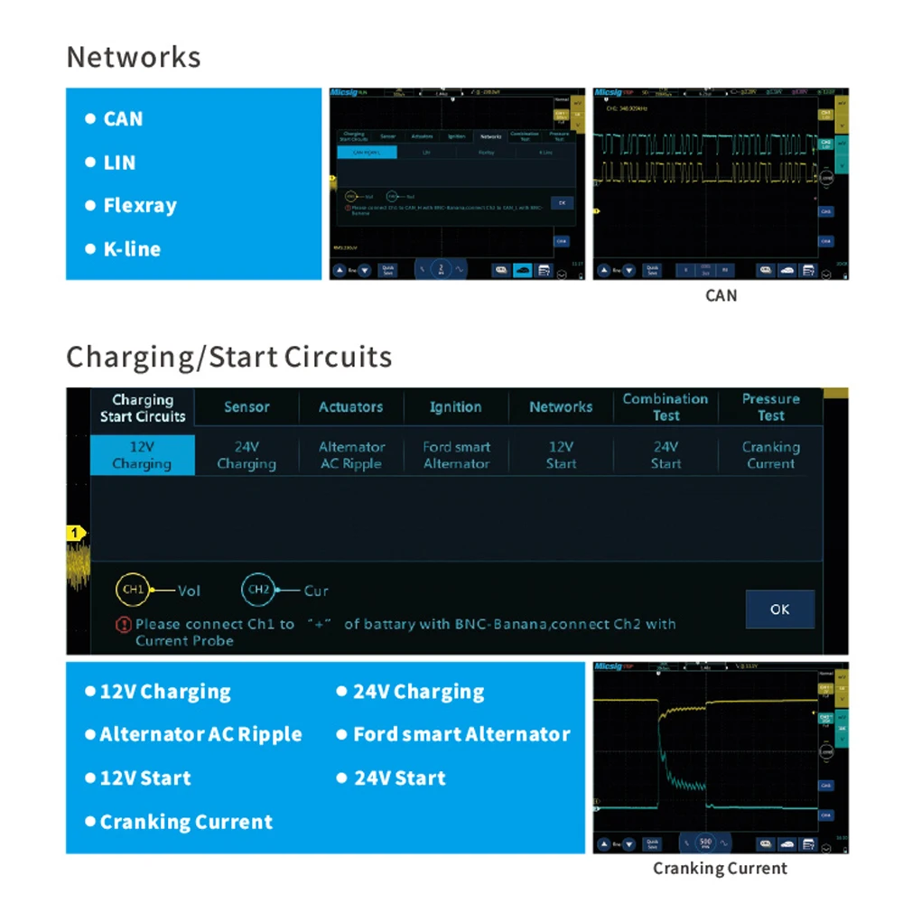 Осциллограф серии Micsig tBook mini обеспечивает простой и интуитивно понятный пользовательский интерфейс. Обеспечивает более приятный опыт тестирования. Вы обнаружите, что вы можете легко управлять волновыми формами, используя те же жесты и элементы управления, что и на вашем смартфоне или планшете. Для обучения использованию требуется всего несколько минут.
