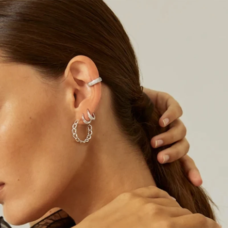 925 стерлингового серебра волнистые линии серьги круглые большие бамбуковые цепи форма открытия круг серьги для женщин модный подарок для ювелирных изделий