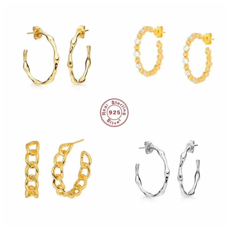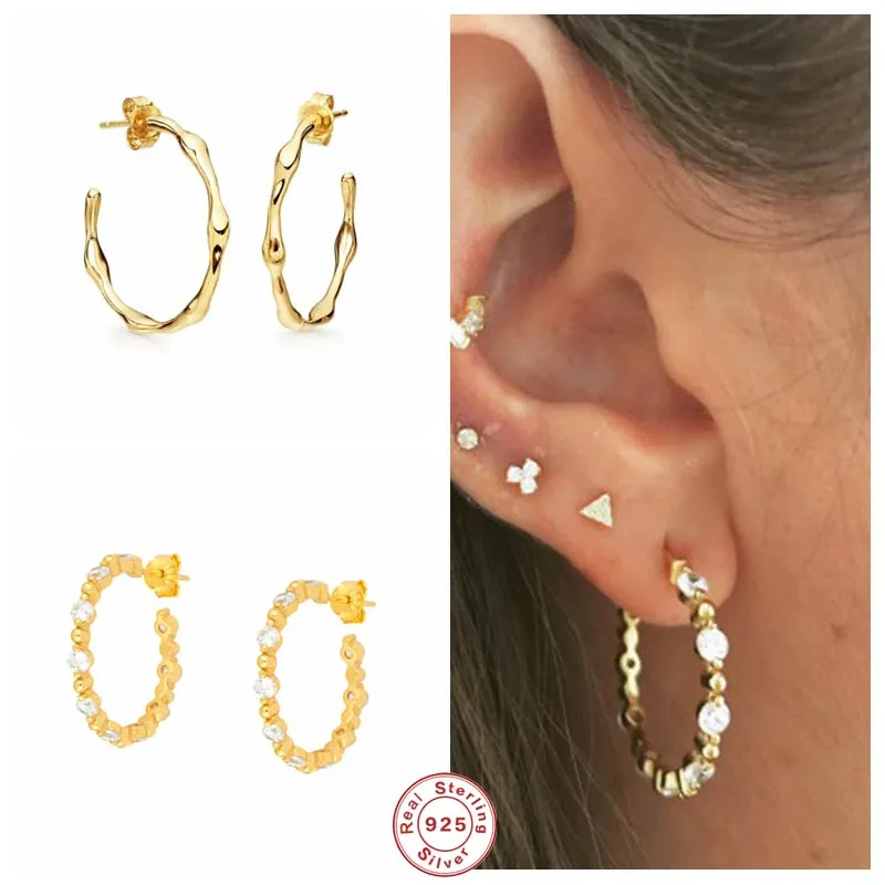 100% s925 стерлингового серебра серьги в виде колец, Модные Винтажн...