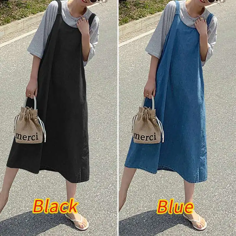 Летнее платье из джинсовой ткани, женское винтажное длинное платье ...