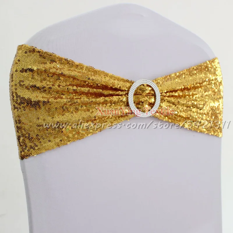 Ленты для стула из лайкры и спандекса, эластичные, золотистые, серебристые, с блестками, галстуки-бабочки для украшения отеля для мероприятий, вечеринок, свадьбы, 10 шт., 50 шт.