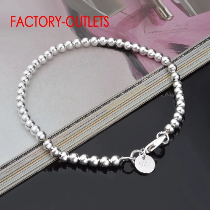 925 стерлингового серебра серебряный браслет из бусин пробы для жен...
