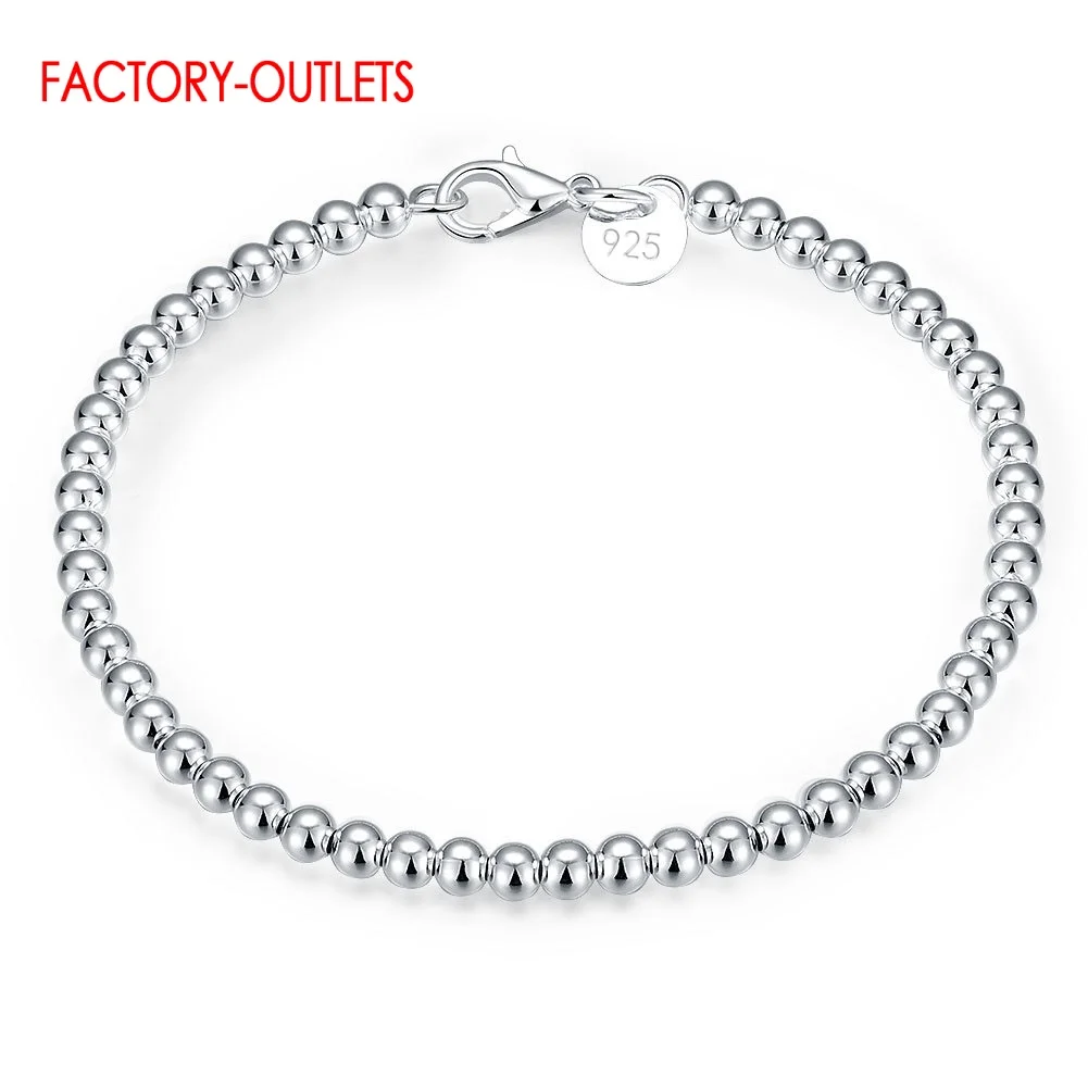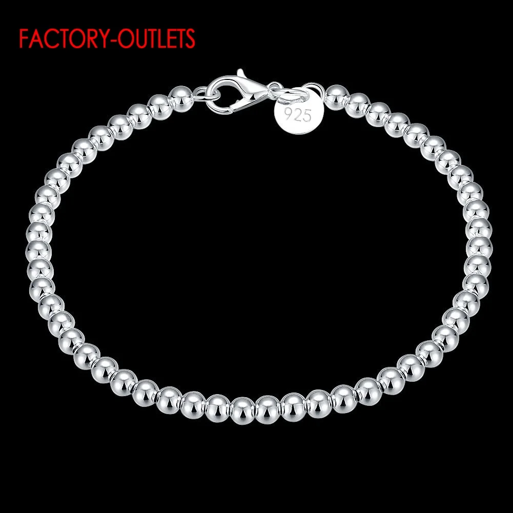 Круглые бусины, 4 мм, браслет, круглый диск, амулеты, Стерлинговое ...