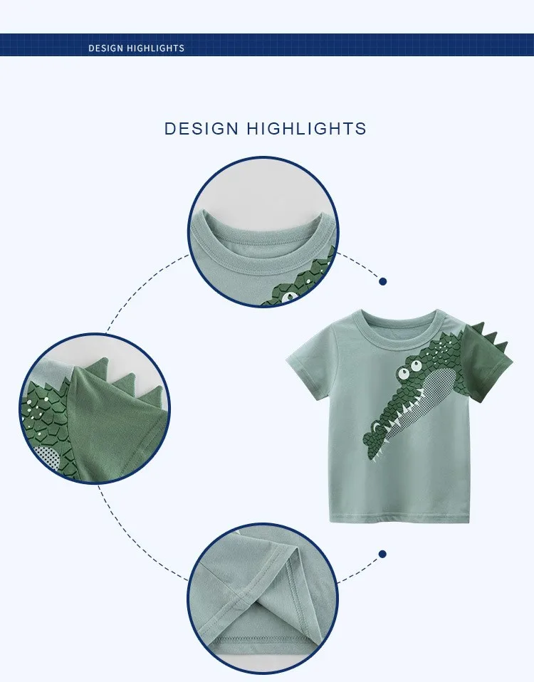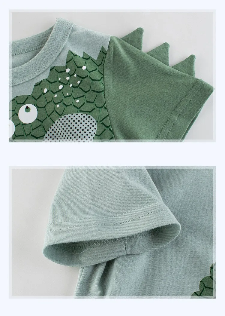 Детская футболка Yocute для мальчиков, детская одежда, Новинка лета 2022, рубашка с коротким рукавом и динозавром, хлопковая Повседневная стильная одежда для мальчиков