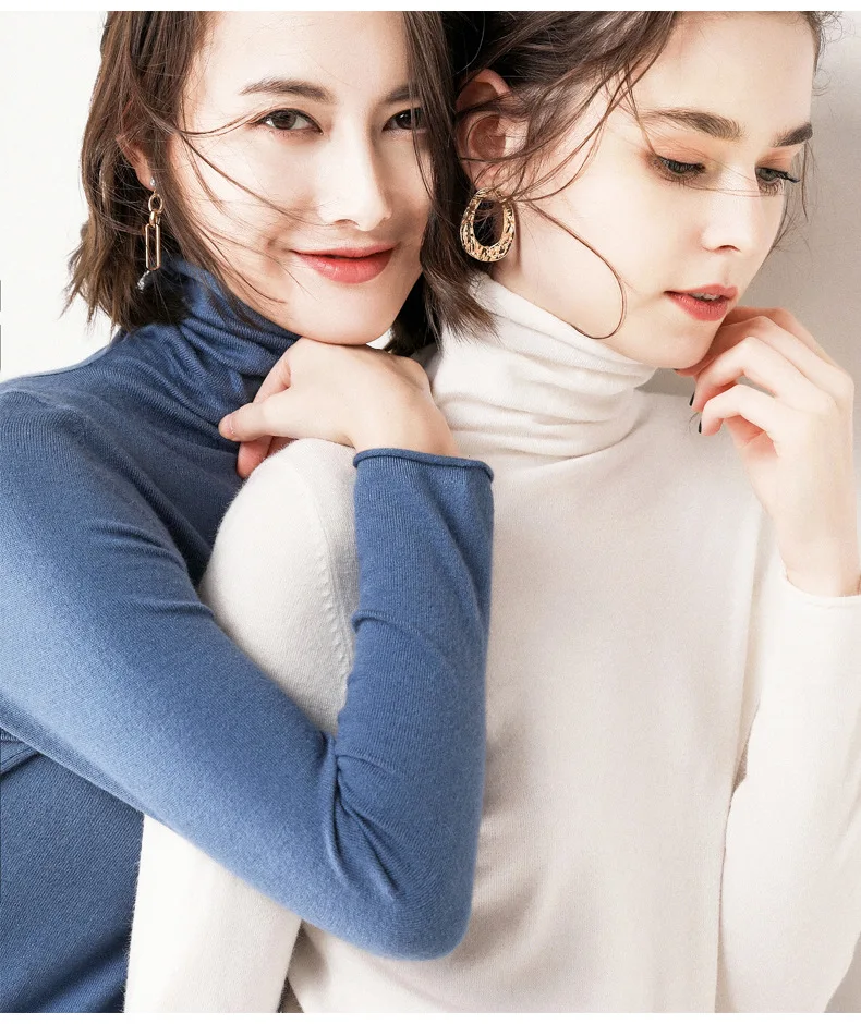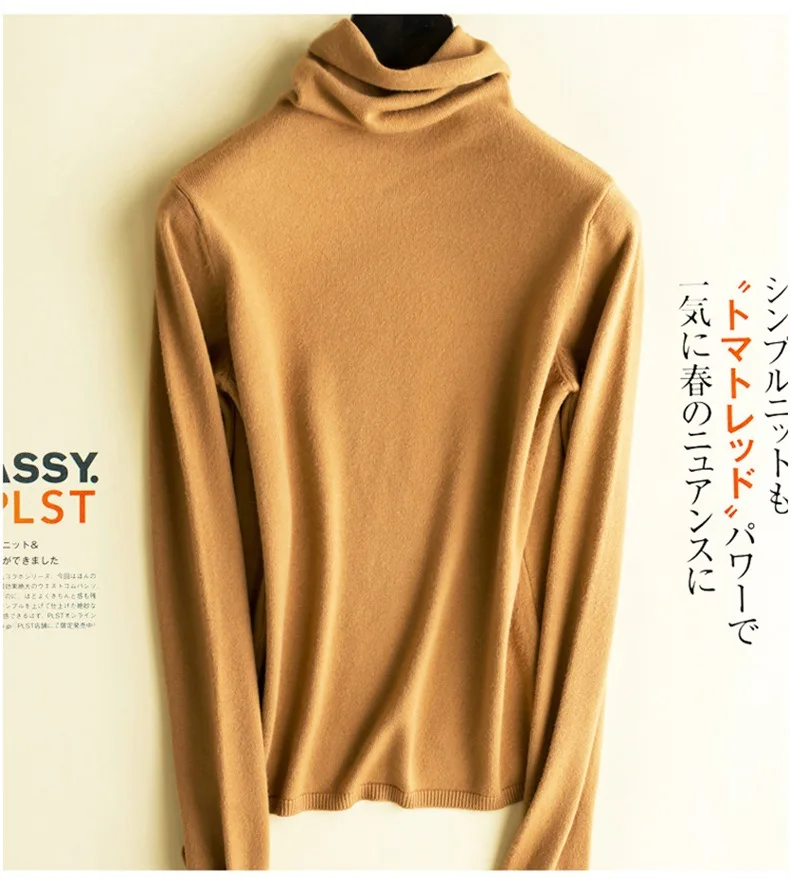 Осень-зима 2021, новинка, базовые однотонные кашемировые свитера, Женская приталенная рубашка с ворсовым воротником, пуловер, вязаный Топ