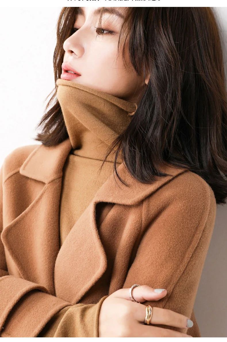Женский свитер с высоким воротником, повседневный кашемировый вязан...