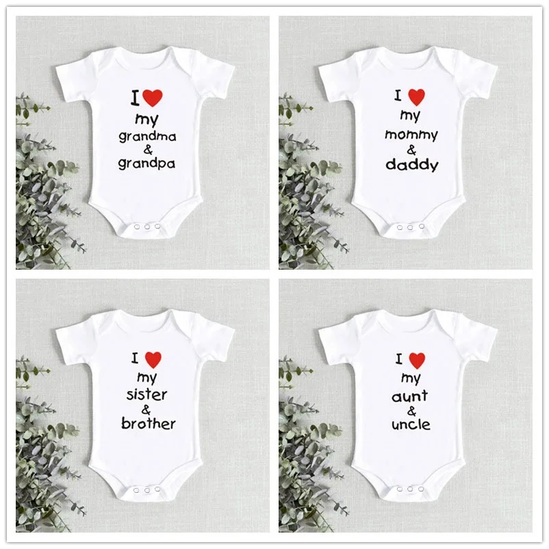 Я люблю свою бабушку, дедушку, маму, папу, новорожденный детский комбинезон, забавный детский комбинезон для мальчиков и девочек, мягкий повседневный комбинезон с короткими рукавами