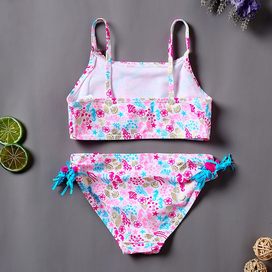 Купальник детский в радужную полоску, комплект для плавания из двух предметов, белый купальник, детская пляжная одежда, купальники для девочек, милое бикини