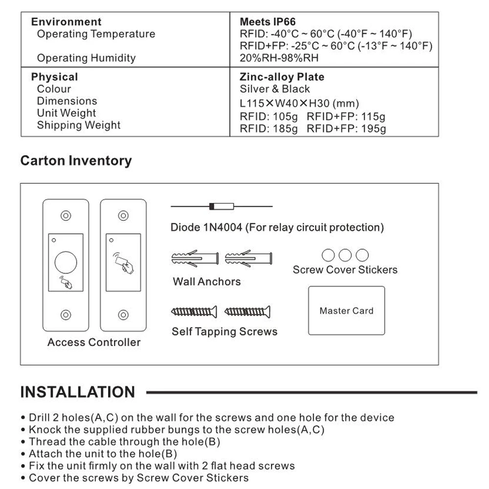 Емкость пользователя: поддерживает до 800 отпечатков пальцев и 3000 карт.