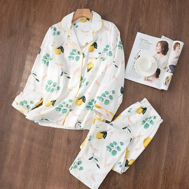 Японские хлопковые газовые пижамные костюмы для пар, мужские хлопко...