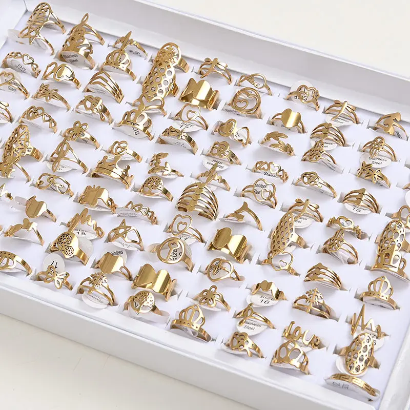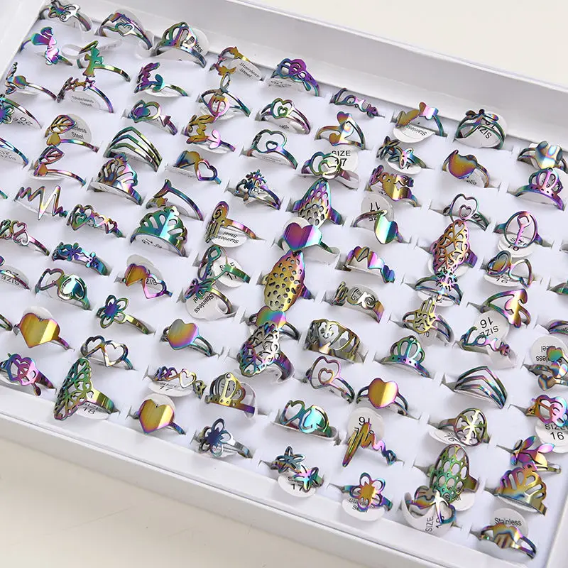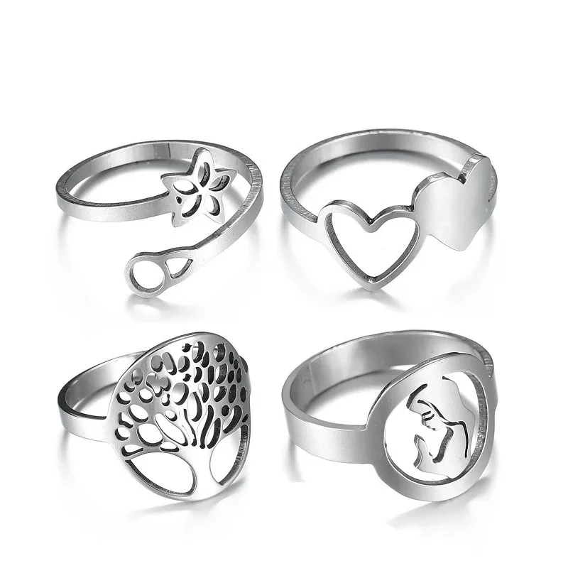 10 шт.лот, модные ювелирные кольца из нержавеющей стали с полыми цветами, животными и т. д., разные стили, ювелирные изделия для женщин (4 вида цветов на выбор)