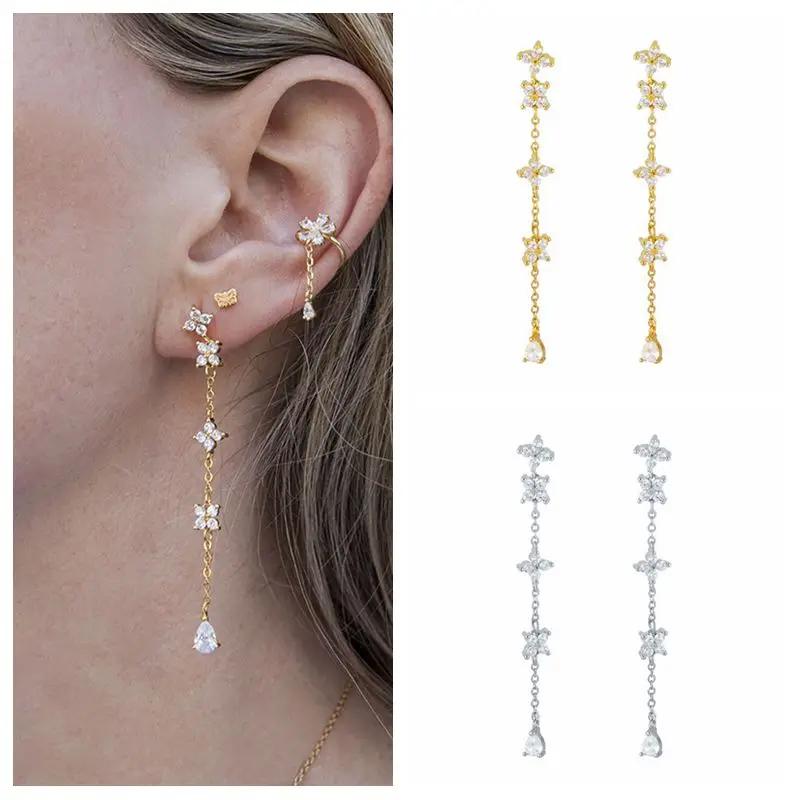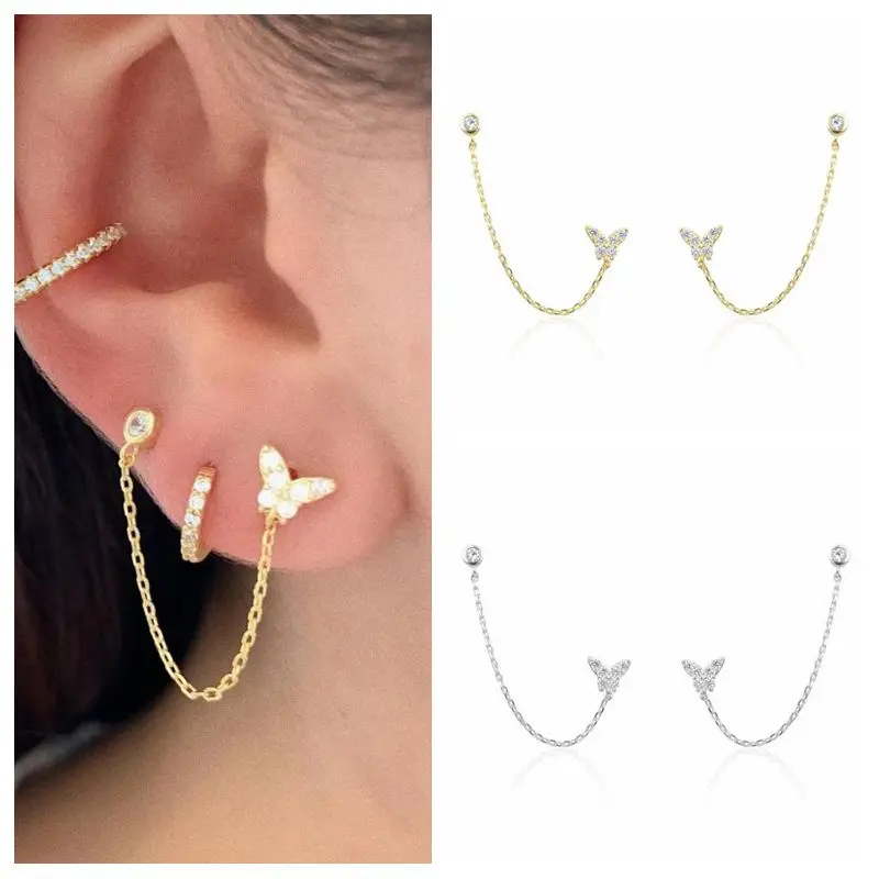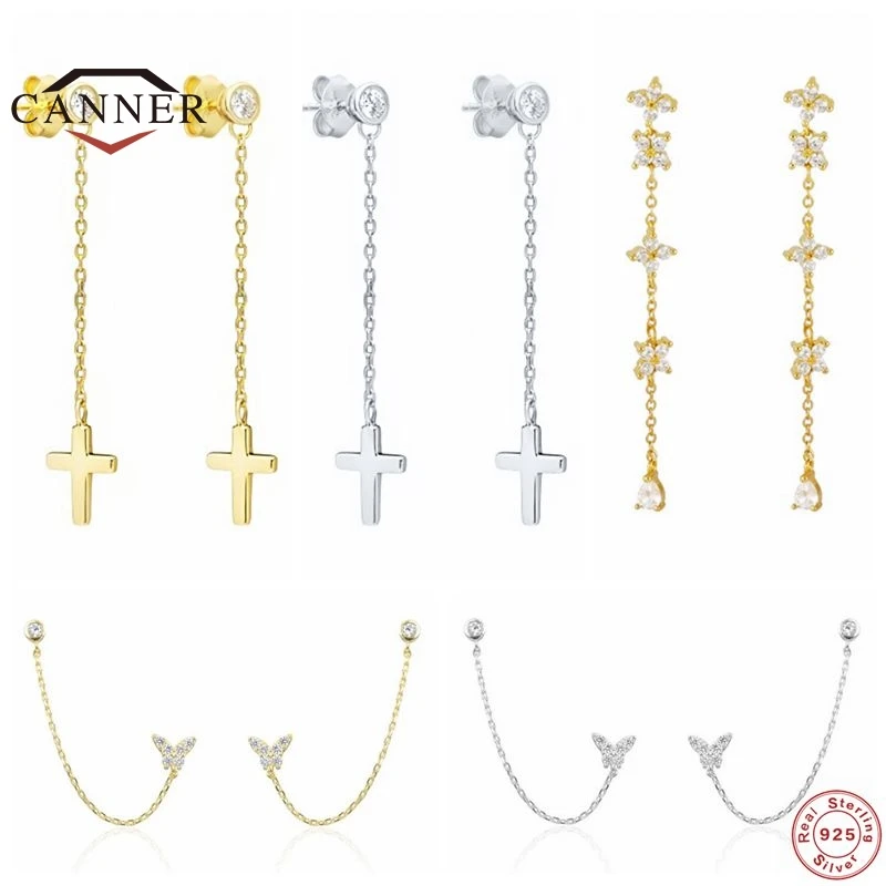 Автоклав 2021 новый 925 стерлингового серебра CZ циркон крест, серьги со шпилькой, для женщин, пирсинг цепь серьги на Ушную раковину с пряжкой ювелирные изделия: модные серьги в форме