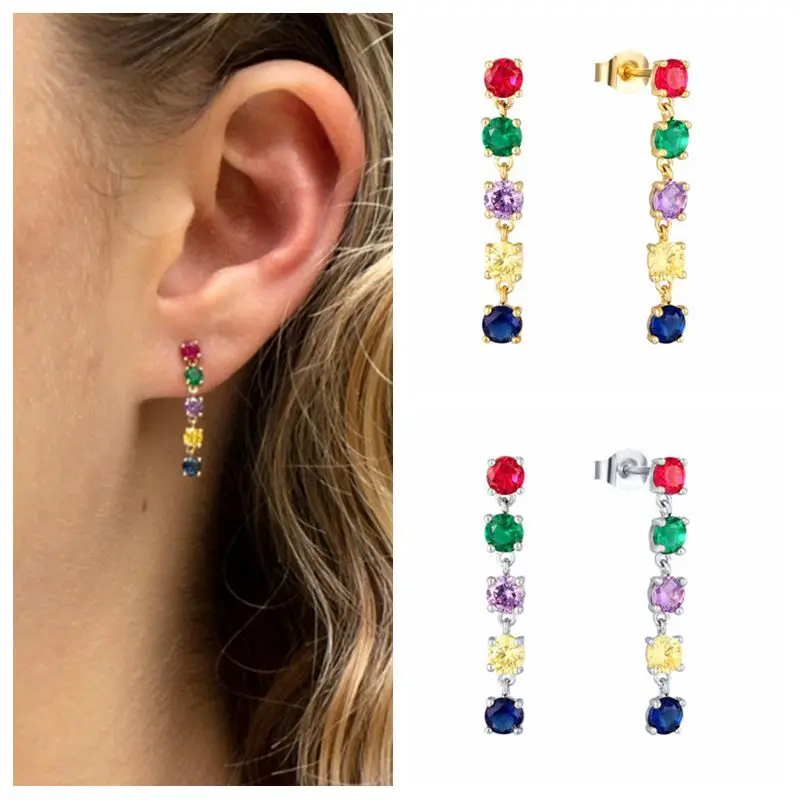 Женские серьги-гвоздики из серебра 925 пробы с разноцветным цирконием