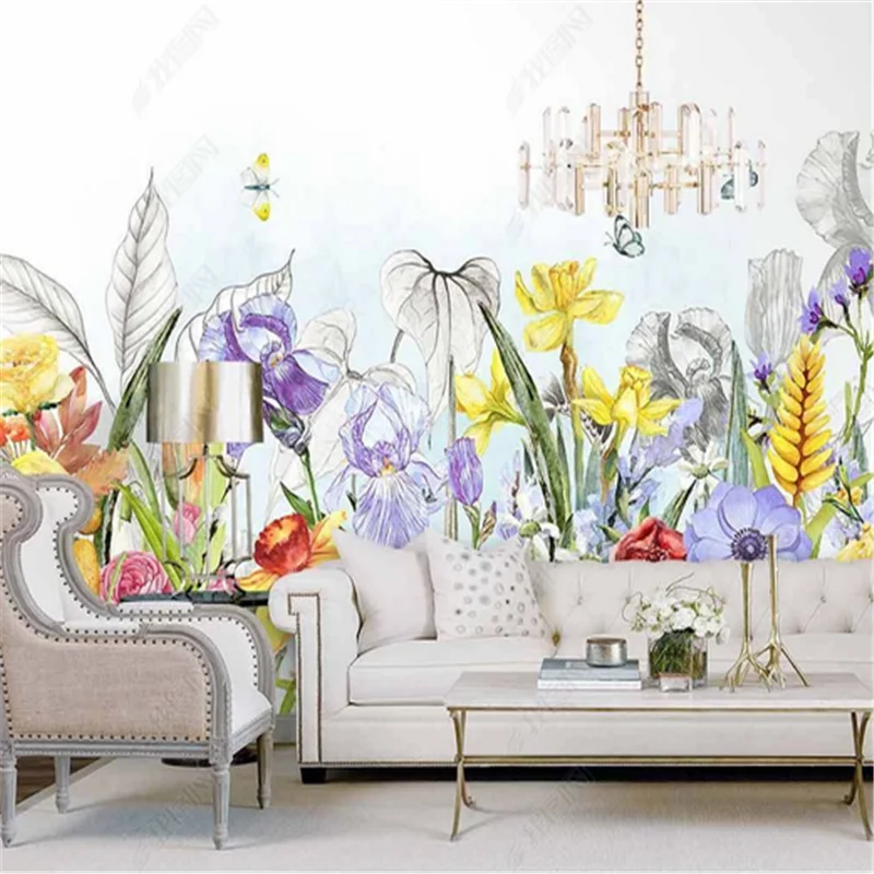 Европейские Красочные цветы для гостиной фрески обои 3d маленький Свежий сад ветер фон обои для спальни роспись домашний декор