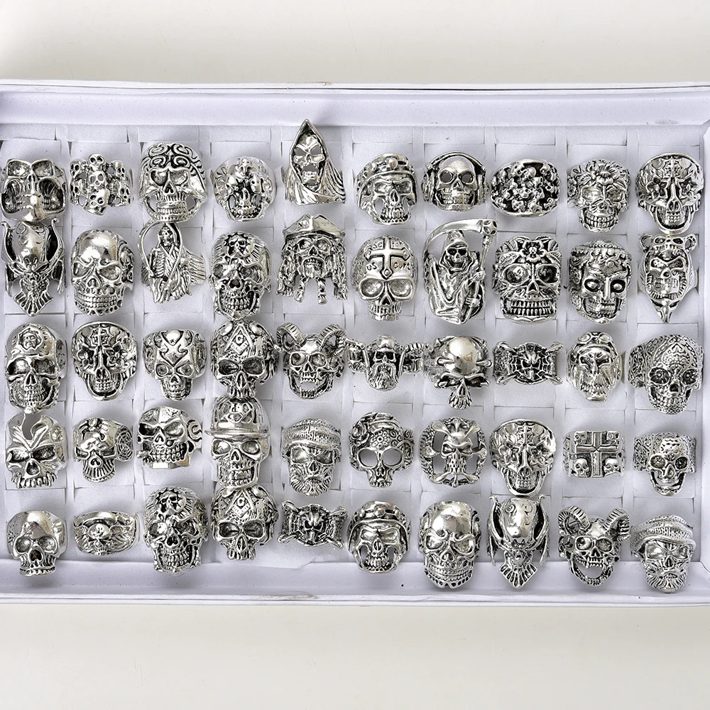 Оптовая продажа, 25 шт.лот, мужские винтажные металлические кольца в стиле панк, готика, разные стили